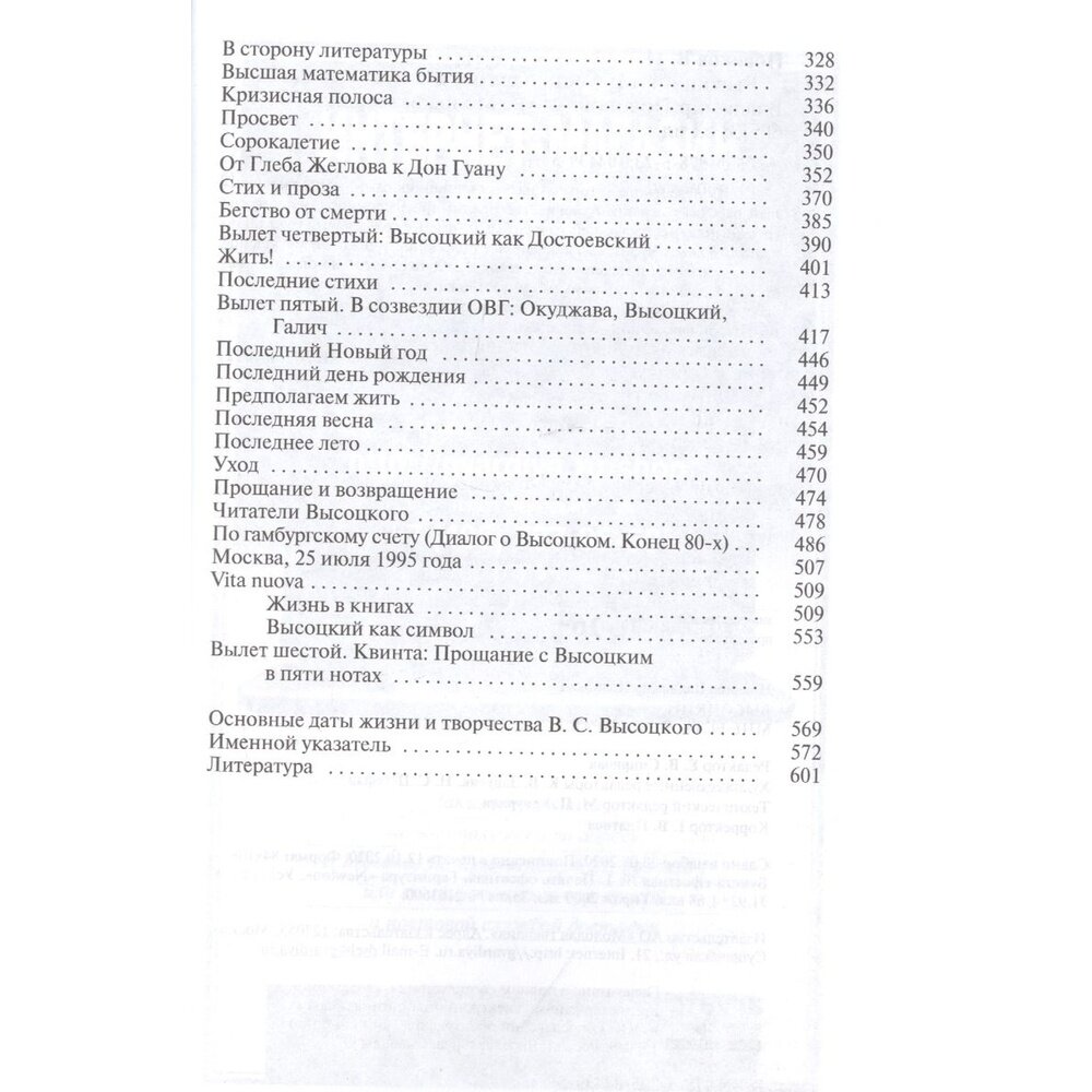 Книга известного автора — мастерски написанный, неприукрашенный рассказ о жизни и творчестве Владимира Высоцкого, нашего современника, человека, чей голос в 1970—1980-е годы звучал буквально в каждом доме. Читатель узнает новые подробности о жизни мятущейся души, ее взлетах и падениях, страстях и недугах. Автор не ограничивается биографическими рамками повествования, а вдумчиво анализирует творчество Высоцкого-поэта, стремясь определить его место в культурно-историческом контексте эпохи.
