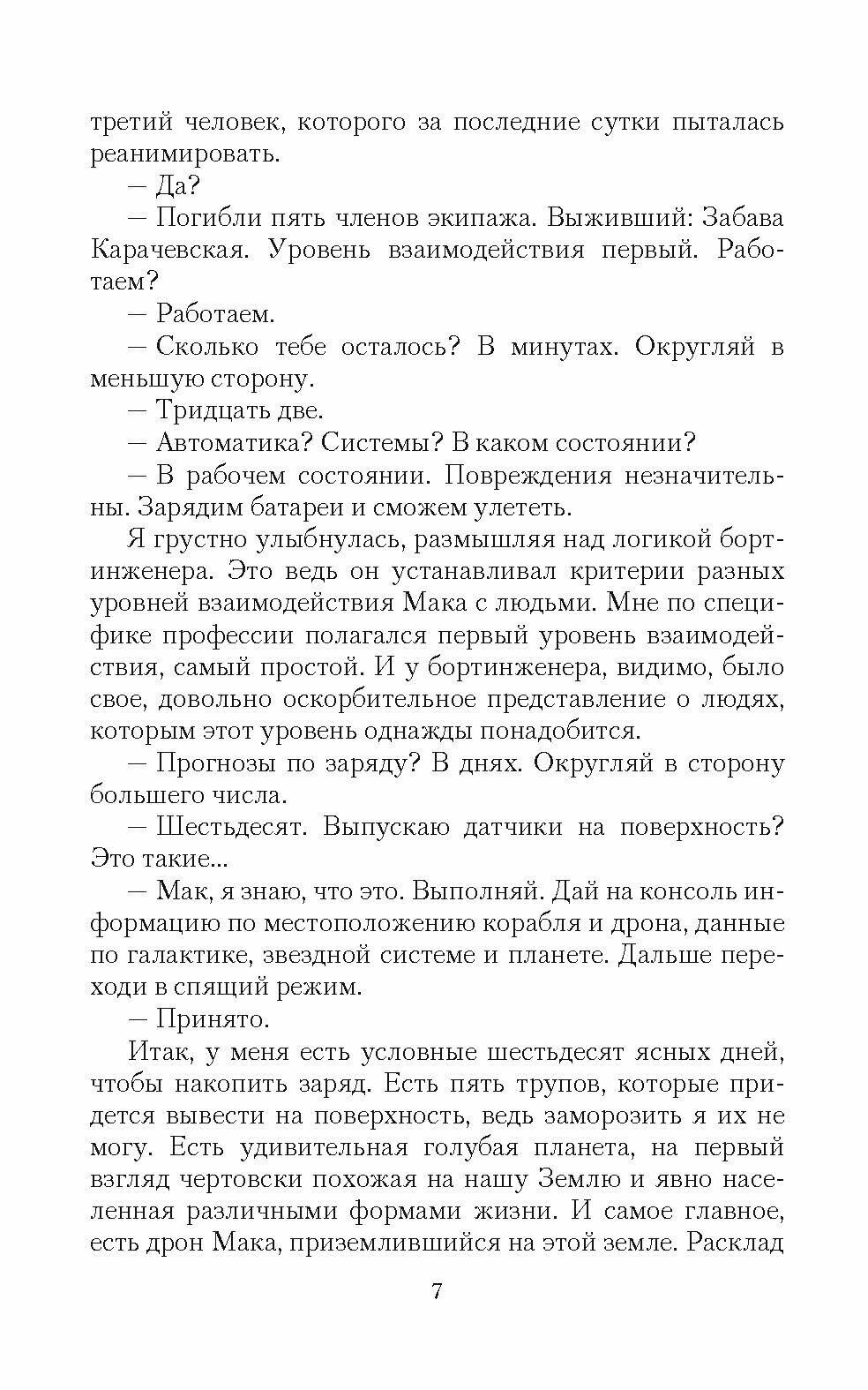 Начало этого романтического фэнтези в космических "декорациях" было интригующим. Космический корабль Мак терпит бедствие. Почти все, кто был на борту, погибли. В живых осталась только девушка-эмпат Забава. Ей нужно выжить на варварской планете, где еще рабовладельческий строй, в какой-то далекой галактике. При этом ей необходимо найти преступника-психопата, который сбежал с корабля (девушке!!! - маньяка!!!). И здесь ждешь чего-то необычного, каких-то приключений, погонь и т.п., помощи от ИСКИНа корабля. Но ничего такого не будет. ГГ-ня попадает в руки местного властителя с необычным именем Вангьял (было бы удивительным, если бы она не попала в чьи бы то ни было руки). Начало их взаимоотношений интересно - то, как они присматривались друг к другу, нащупывали "болевые" точки. Пока суть да дело, начинаются события, связанные со свержением власти (ну и уничтожением сбежавшего преступника, конечно) на конкретной заброшенной в космических далях планете. И если психоанализ автору более или менее удался, то войнушки и многое другое - это явно не ее. Не слишком достоверно. ИМХО. Все, что происходит с героями, не вызывает отклика в душе, сопереживания. Интерес вызывает, пожалуй, лишь противостояние интеллектов двух людей, стоящих на разных ступенях развития цивилизации. Вангьял, безусловно, сильная личность. А вот Забаве зачастую не хватает обычного жизненного опыта и... ума, хотя и позиционируется она как неглупая барышня. В любовь героев слабо верится. Ну не начинается любовь с постели, скорее, наоборот. А тут мужчина - умный и сильный правитель - и вдруг возится с какой-то новой, пусть и необычной рабыней (правда, знаки принадлежности на ней растворяются из-за наличия в теле неких восстанавливающих наночастиц, что тоже вызывает его интерес). Да и детективная линия совсем слабенькая. Что с поимкой преступника, что со свержением власти.... А вот иллюстрации нового для серии ромфана художника М. Поповского понравились, есть в них своя "изюминка".