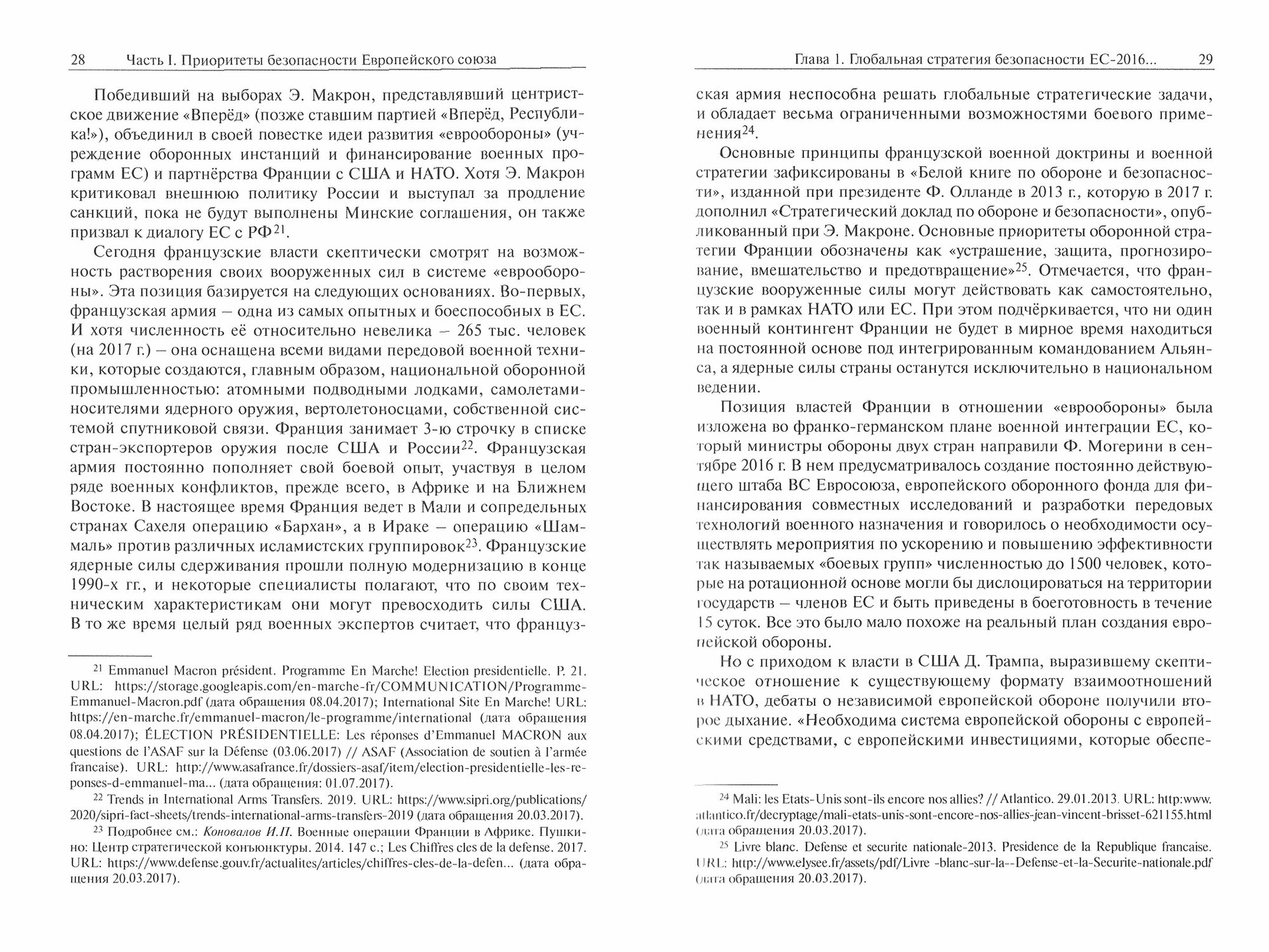 Данная монография посвящена исследованию качественно нового этапа развития европейской интеграции, направленной на обретение Европейским союзом стратегической автономии. Авторы анализируют как внешнеполитический контекст, ставший катализатором для продвижения стратегической автономии ЕС, так и наиболее важные инициативы нового этапа развития: Глобальную стратегию безопасности, создание структуры военного планирования и обеспечения способности к проведению операций за пределами зоны ответственности ЕС (MPCC) в составе военного персонала ЕС (EUMS), Постоянное структурированное сотрудничество (PESCO). Стратегическая автономия ЕС, по мнению авторов, может помочь европейцам взять на себя ответственность за свою судьбу во все более суровой международной среде. Эта проблема рассматривается и на общеевропейском уровне, и на уровне отдельных государств, что позволяет выявить различия в приоритетах и подходах стран к обеспечению общей политики безопасности.
