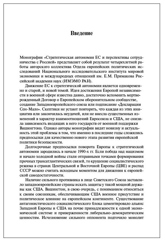 Стратегическая автономия ЕС и перспективы сотрудничества с Россией (Арбатова Н., Кокеев А. (ред.)); Весь, 2020