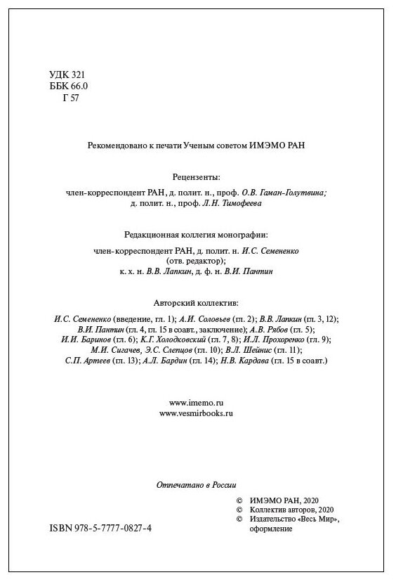 Государство в политической науке и социальной реальности XXI века (Лапкин В. В., Семененко Ирина Станиславовна, Пантин Владимир Игоревич); Весь мир, 2020