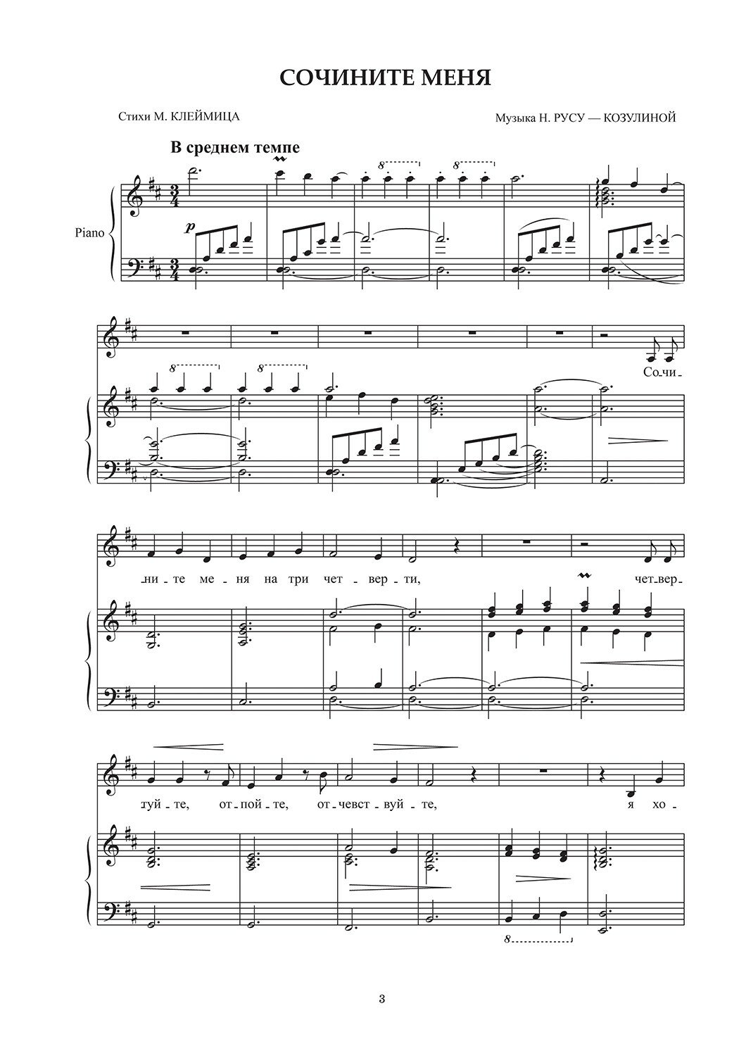 Композитор Наталья Юрьевна Русу-Козулина пишет музыку самых разных жанров: от песни и романса, музыки для детей, театра, цирка до инструментальной камерной, вокальной хоровой и симфонической музыки. Она часто выступает с исполнением своих песен и романсов, а также своей инструментальной музыки, активно участвует в фестивалях и концертах в России и за рубежом. Очень плодотворна и успешна работа Русу-Козулиной для детского театра, ею создана музыка почти к 20 спектаклям. Её музыку исполняют артисты Детской филармонии Санкт-Петербурга, а также многие детские коллективы.