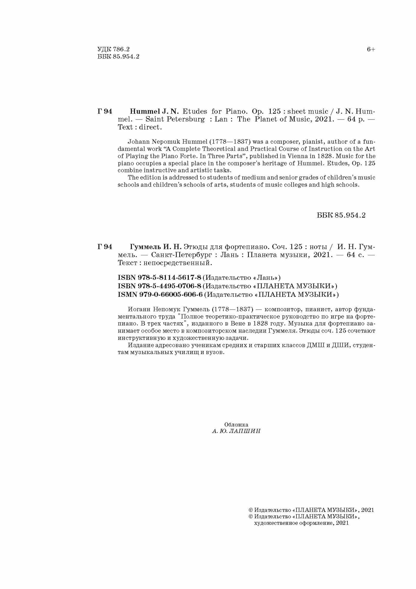 Этюды для фортепиано. Соч. 125. Ноты (И. Н. Гуммель); Издательство «Планета музыки», 2021