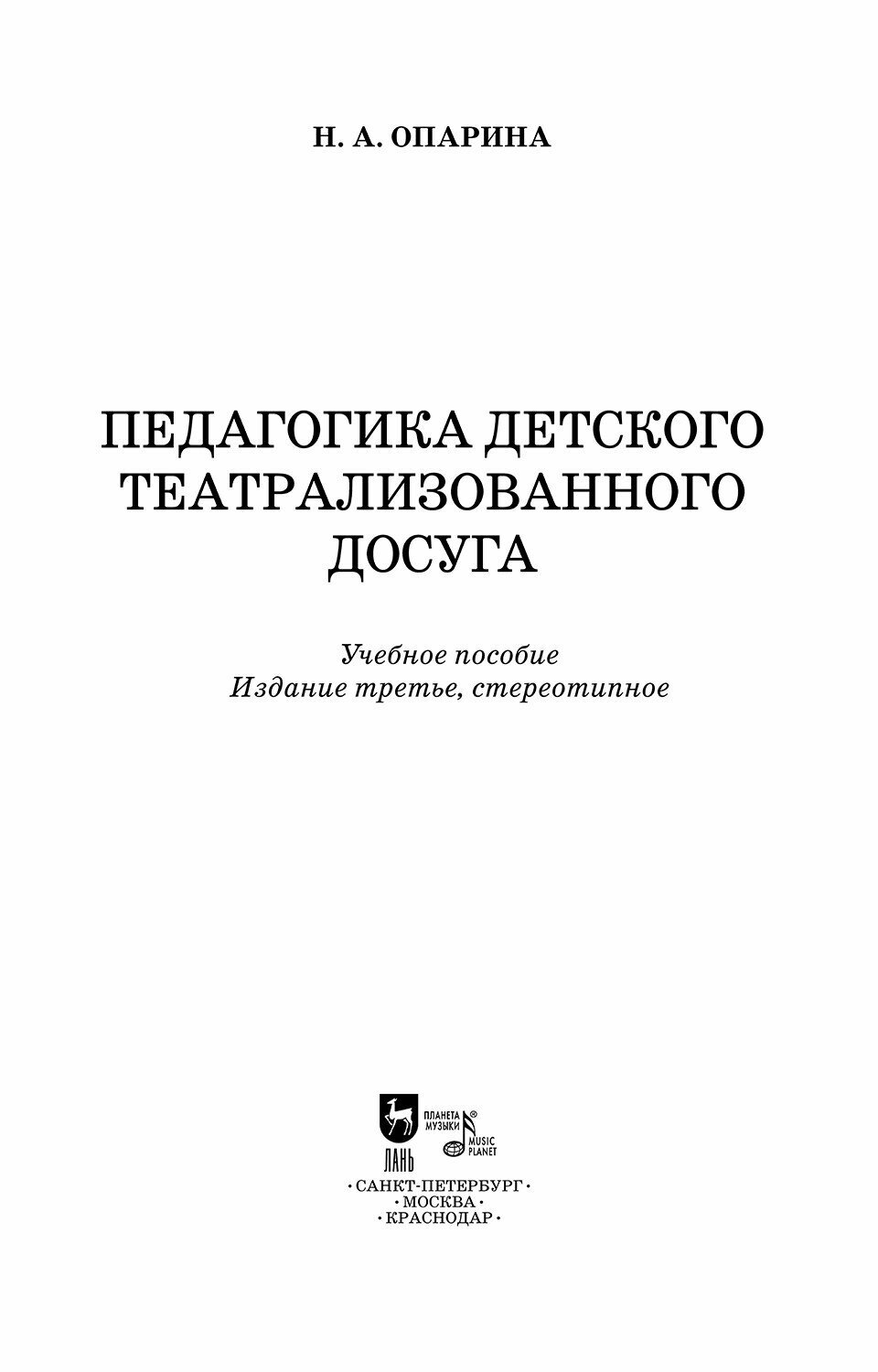 Педагогика детского театрализованного досуга. Учебное пособие (Н. А. Опарина); Издательство «Планета музыки», 2022
