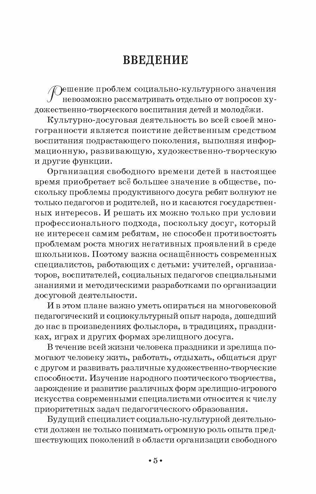 В предлагаемой работе исследуются художественно-творческие и организационные особенности каждой формы досуга и сценарно-режиссерские приемы театрализации. Обращается внимание и на педагогическое, и на социокультурное значение различных видов театрализованных зрелищ в процессе художественно-творческого развития современных детей.