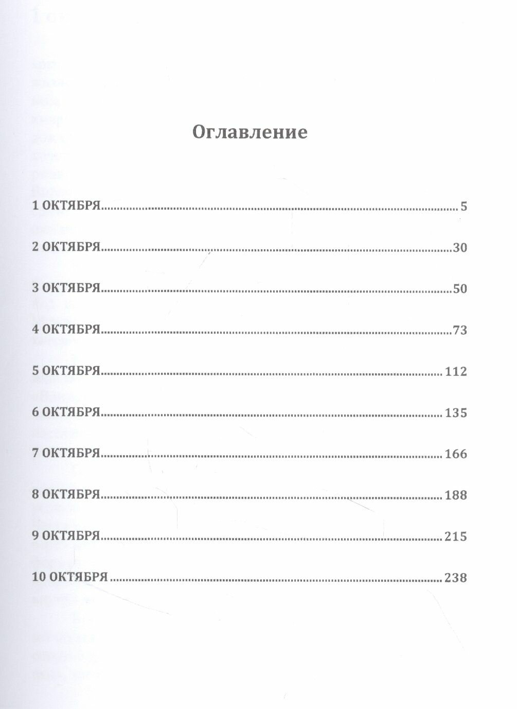 Если вы устали от бесконечных любовных романов, криминала и фэнтези, если вам интересна серьезная литература, которая побуждает задуматься о жизни, то «Десять дней октября», это то, что вам нужно. Книгу можно отнести к категории философского романа, и рассчитана она в первую очередь на думающего читателя. По большому счету - это книга о жизни и, в первую очередь, о любви, но не между мужчиной и женщиной, а о любви к людям.