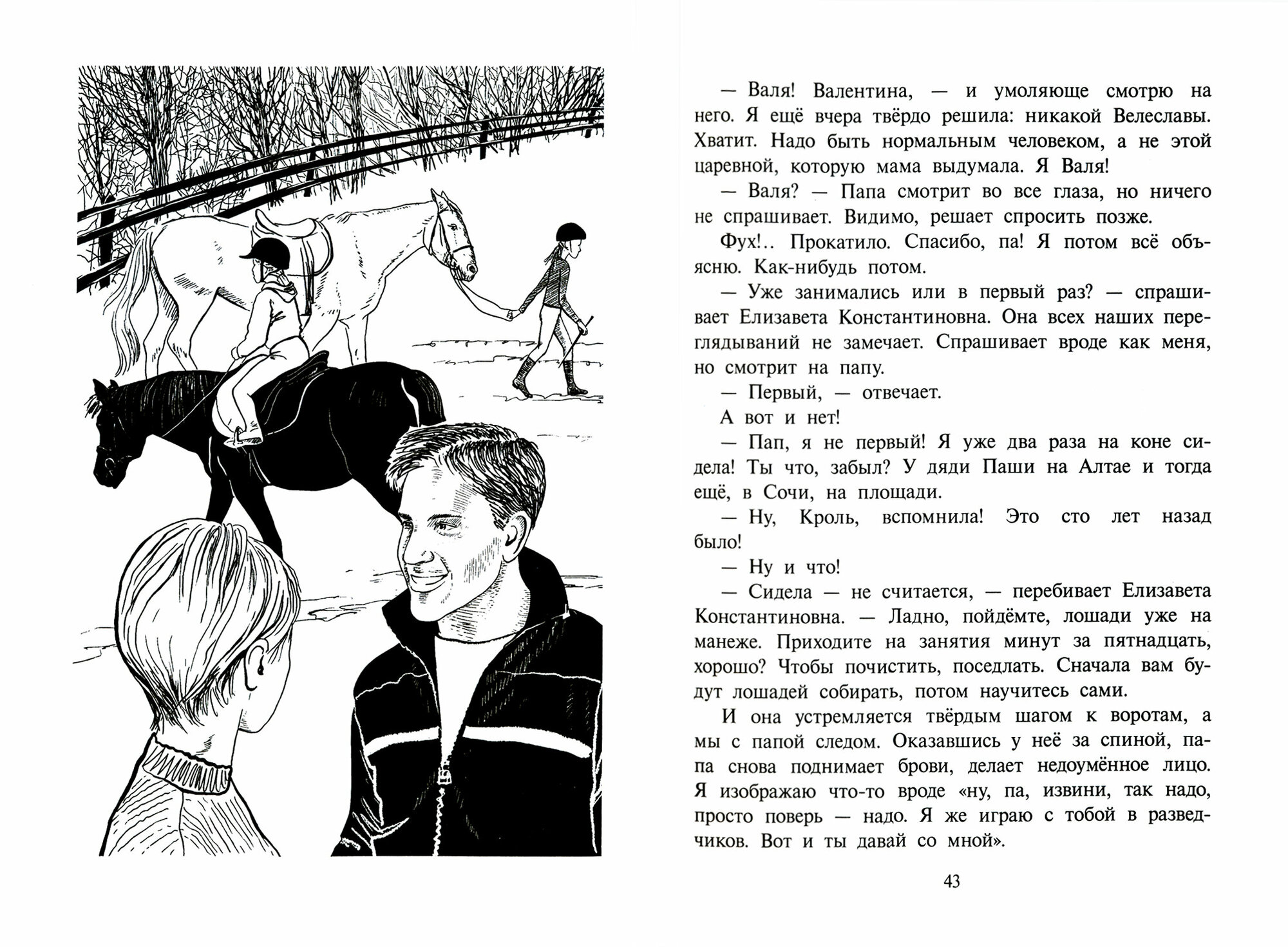 И вот посреди этого подростково-лошадиного завихрения наша героиня(у автора явный уклон в славянские имена, поэтому бедного ребёнка наградили именем Велислава Станиславовна)))), заставили учиться дома и подчинять свои желания и потребности семейным приоритетам (мама-перфекционистка, экстраординарная давящая личность и папа-странник, убегающий то в короткие альпинистские походы, то в конный конкур, которые озабочены исключительно младшим сыном с особыми потребностями). Поэтому у Велиславы ни друзей, ни своих собственных увлечений как бы и нет...она считает себя пустышкой, а брата-аутиста гением и инопланетным существом. Поэтому и в конном клубе она не знает, не умеет ни себя поставить, ни защитить другого, ни войти в компанию девушек, ни добиться каких-то успехов. Она продолжает восхищаться другими - отцом, братом, девушкой-спортсменкой, неказистой своей лошадкой))) Но через её, пусть и инфантильное, и немного волшебное восприятие мира, читателю интересно открывать других людей, лошадей, тренеров, родителей. Потому что описаны они интересно.