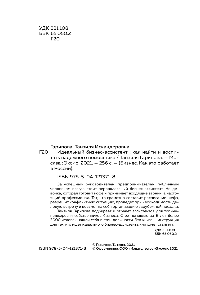 Идеальный бизнес-ассистент. Как найти и воспитать надежного помощника (Гарипова Танзиля Искандеровна); ООО "Издательство "Эксмо", 2021