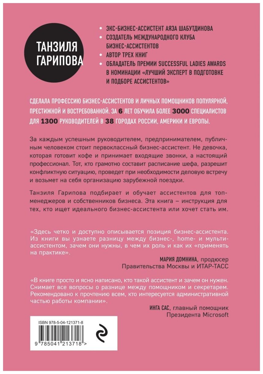 Танзиля Гарипова подбирает и обучает ассистентов для топ-менеджеров и собственников бизнеса. С ее помощью за 6 лет более 3000 человек нашли себя в этой должности. Эта книга - инструкция для тех, кто ищет идеального бизнес-ассистента или хочет стать им.
