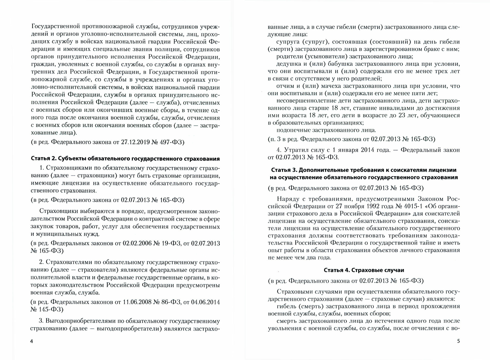 Об обязательном государственном страховании жизни и здоровья военнослужащих, граждан, призванных на военные сборы, лиц рядового и начальствующего состава органов внутренних дел Российской Федерации, государственной противопожарной службы, сотрудников учреждений и органов уголовно-исполнительной системы, сотрудников войск национальной гвардии Российской Федерации, сотрудников органов принудительного исполнения Российской Федерации.