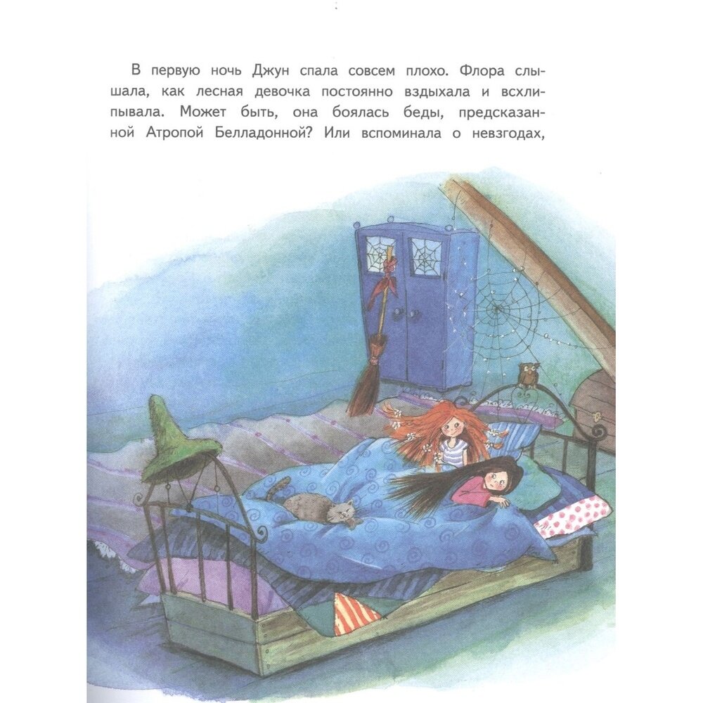 Интересная книга про приключения маленькой ведьмочки Флоры. Дочке понравилось, сюжет динамичный, есть смешные моменты. Книга достаточно толстая, но читается быстро. Иллюстрации не на каждой странице, но красочные и яркие. Бумага плотная. Отлично пойдет для девочек от 5-6 лет. Для самостоятельного чтения лучше лет с 8. Довольны покупкой, будем ждать продолжения. По сюжету не хуже Изадоры Мун и книг Холли Вебб