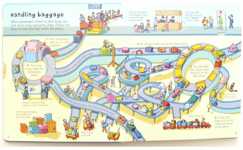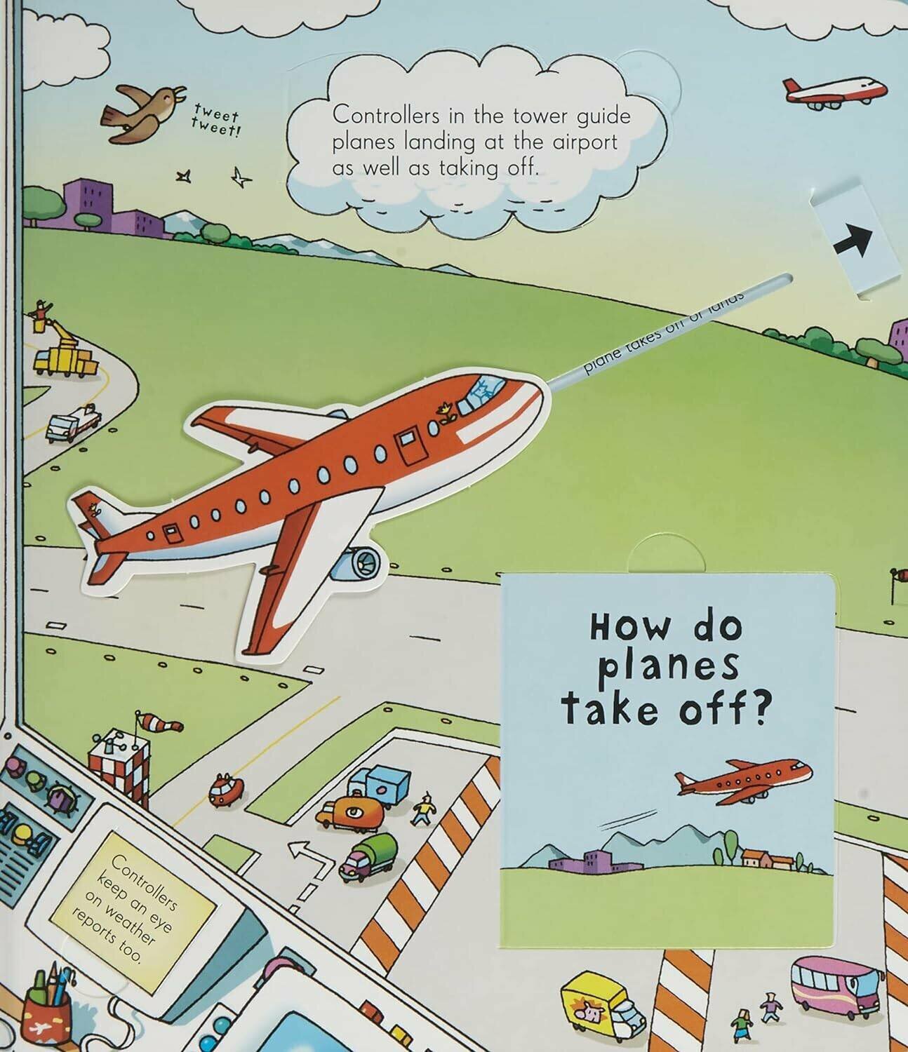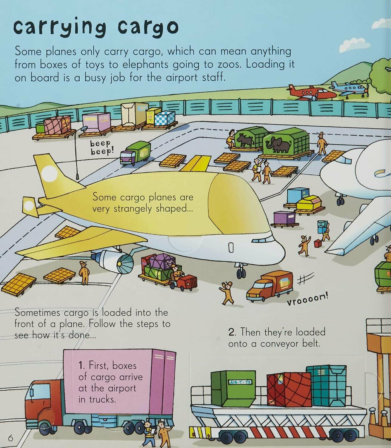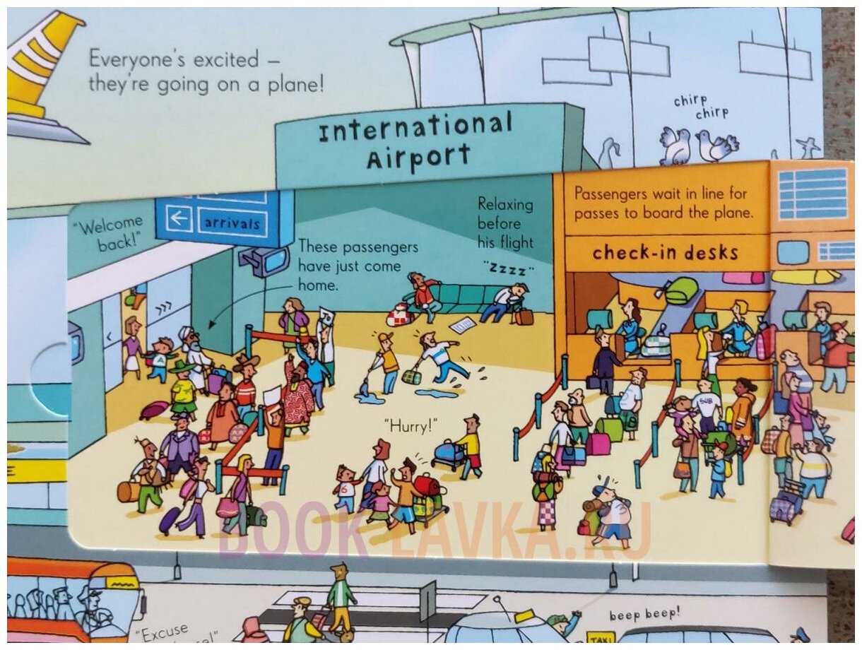 Великолепная книга большого формата от известного издательства Usborne. Книга из плотного картона с множеством флэпов про аэропорт и все, что с ним связано. Книга наверняка понравится мальчикам и их папам и не только, тут много технических определений и различных описаний про устройство аэропорта. Рекомендую!