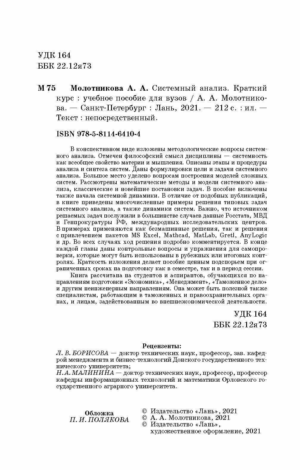 Системный анализ. Краткий курс. Учебное пособие (А. А. Молотникова); Издательство ЛАНЬ, 2021