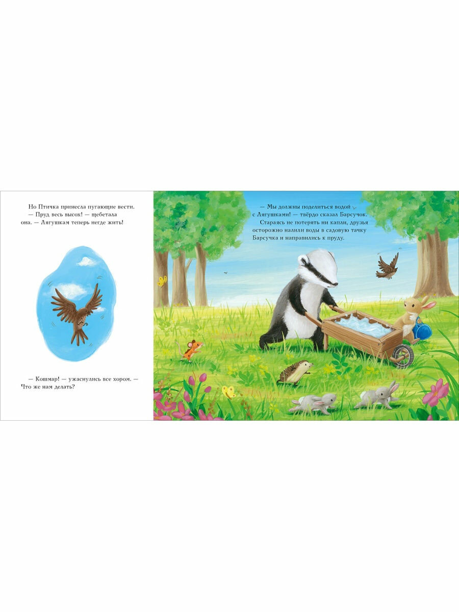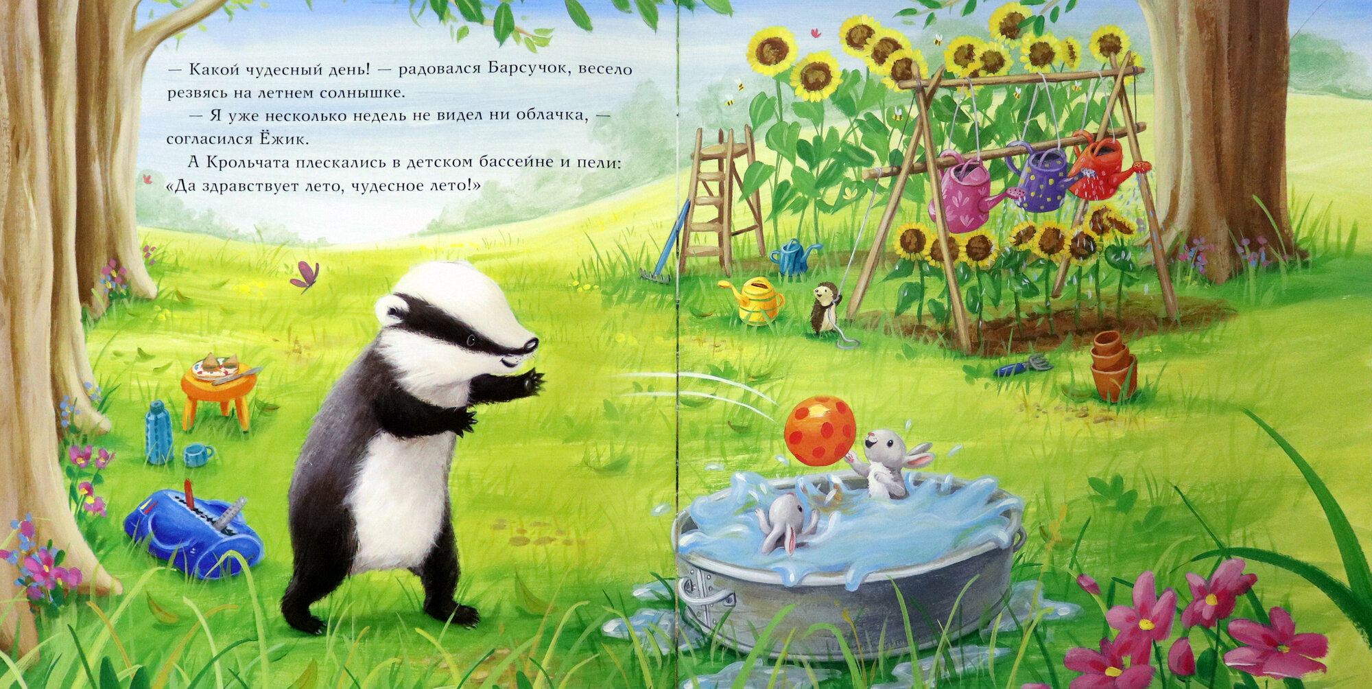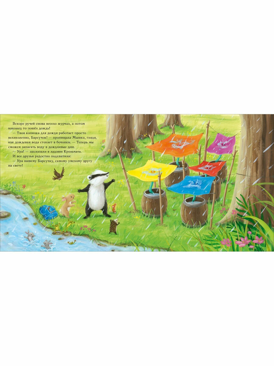 В лесу, где живёт Барсучок со своими друзьями, уже несколько недель стоит жара. Зверята с удовольствием играют на свежем воздухе и плещутся в бассейне. Но однажды утром они замечают, что в ручье закончилась вода. И не только в ручье - пруд, где живут лягушки, совсем пересох! Как же теперь поливать цветы и стирать, а главное, где взять питьевую воду?.. Не теряя времени, друзья отправляются в непростое путешествие, чтобы вернуть воду лесу и помочь его жителям…