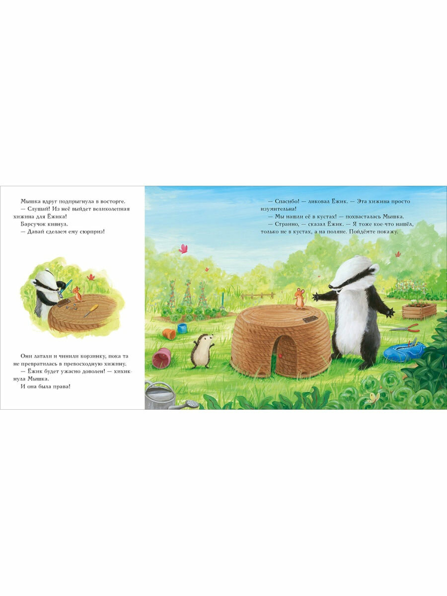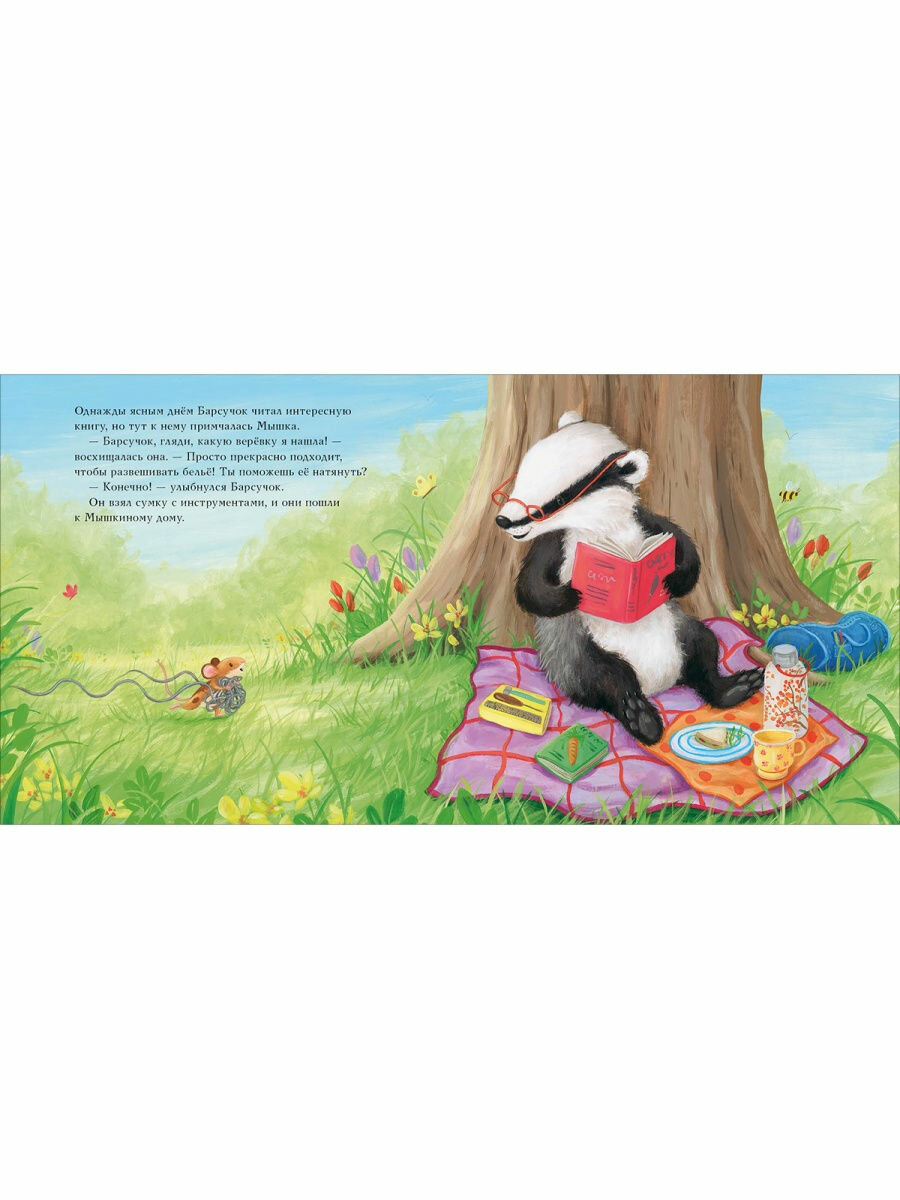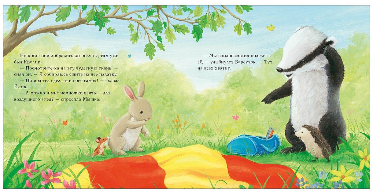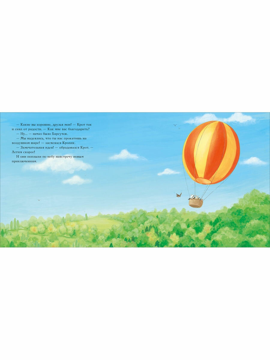 Книга сделана невероятно качественно: красочные иллюстрации, мелованные листы, интересная история о дружбе и приключениях. Текста не очень много, идеально для 2-4 лет. Главный герой обаятельный барсучок, есть элемент путешествия на воздушном шаре - всё что связано с любыми видами транспорта у нашего старшего сына нарасхват. История интересна и сыну 2 лет, и в 3,5