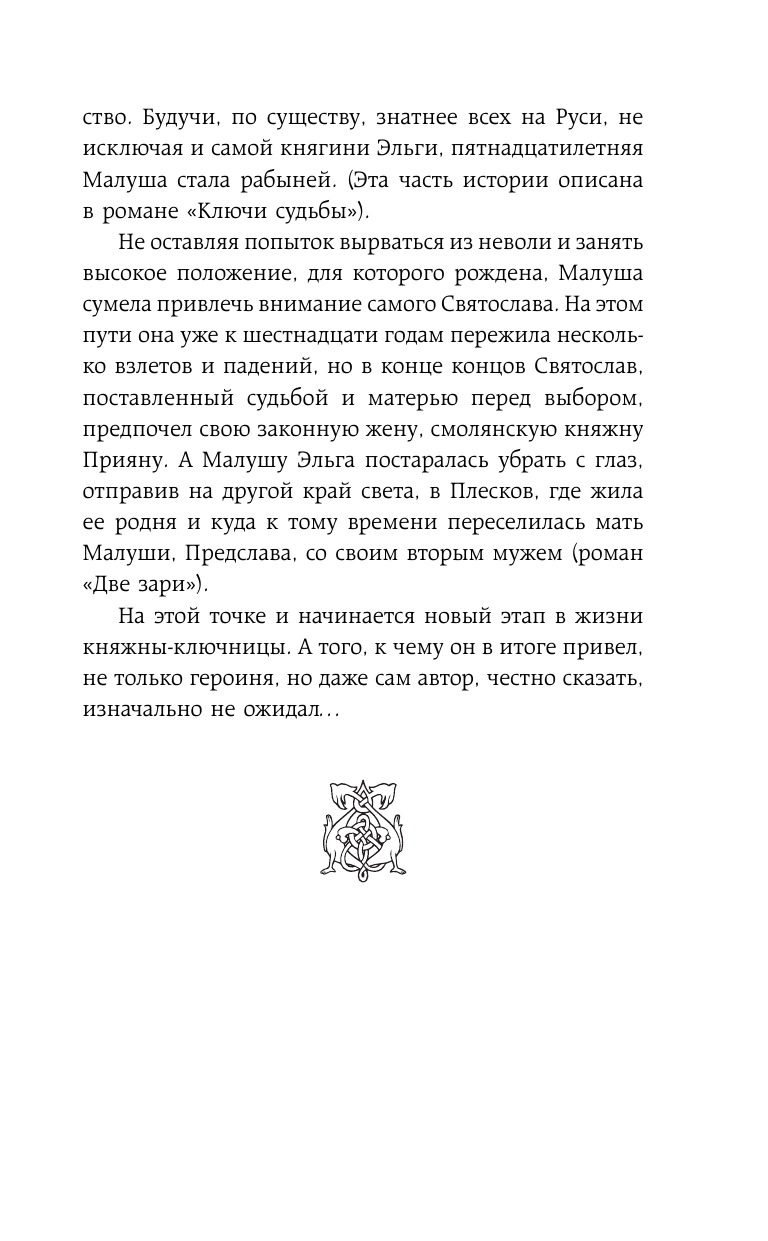 Каждая книга Елизаветы Дворецкой — это захватывающее приключение, мир Древней Руси, в который попадаешь прямо со страниц романа. Ее герои вызывают невольное уважение, их поступки заставляют переживать и радоваться, а их судьбы волнуют так, что невозможно оторваться, не дочитав до конца.