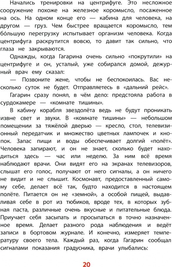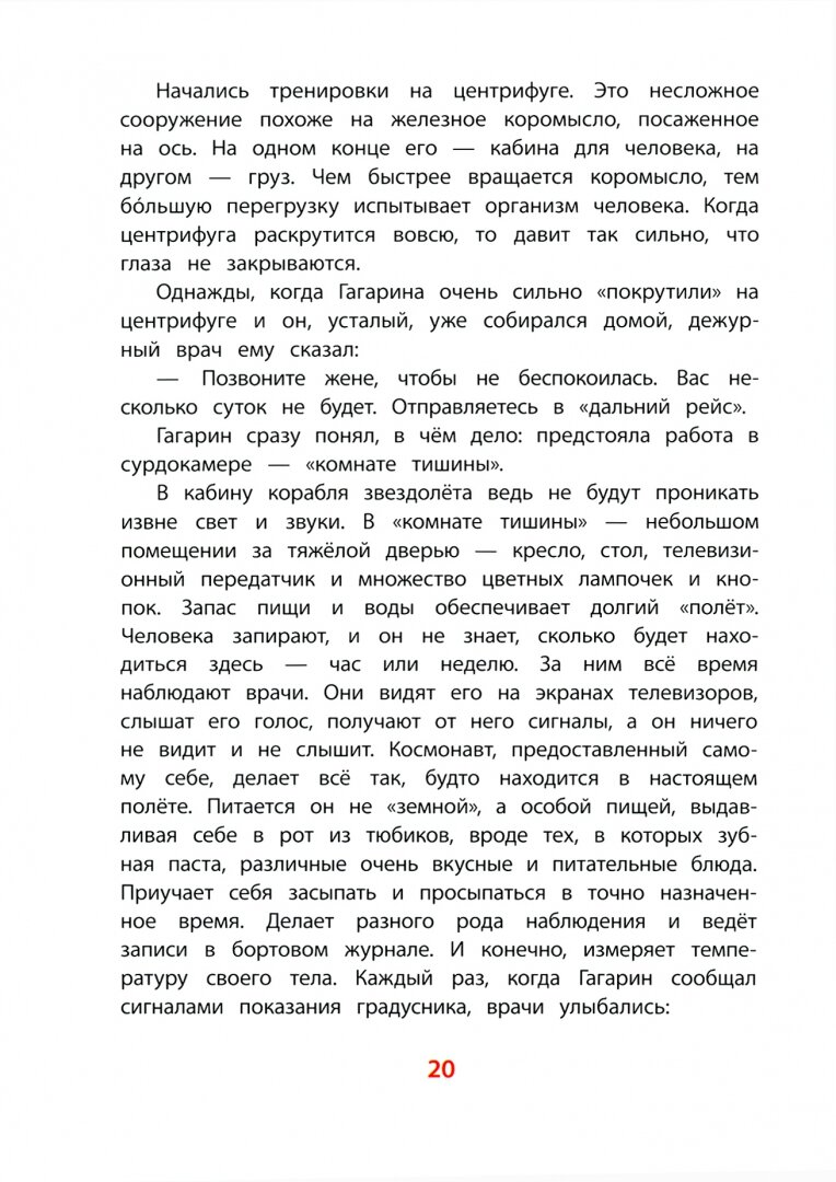 По манере изложения немного напомнила "жизнь замечательных детей" Воскобойникова - перечитала и у него про Гагарина. Там жизнь описана больше, при этом более плавно, спокойно, но, что интересно, описанные моменты жизни Гагарина в этих двух книгах не пересекаются. Так что, если есть возможность, к этой книге рекомендую еще и Воскобойникова.
