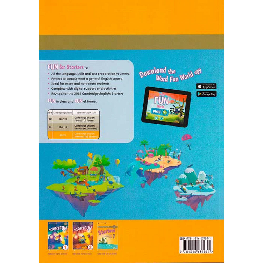 Fourth edition of the full-colour Cambridge English: Young Learners (YLE) preparation activities for all three levels of the test (Starters, Movers, Flyers) updated to reflect the new revised specifications which will be out in January 2018. Fun for Starters Student's Book provides full-colour preparation for Cambridge English: Starters. Fun activities balanced with exam-style questions practise all the areas of the syllabus in a communicative way and support young learners in the areas they find most difficult. Listening material to accompany the Student's Book is available online for download or as a separate Audio CD. Grammar and vocabulary activities get students practising online in their own time via an access code in the book.