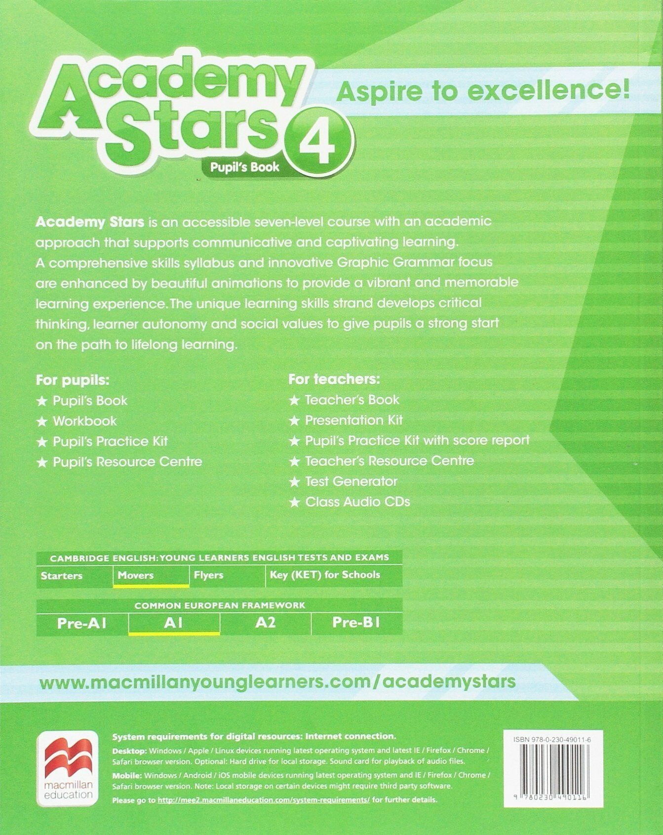 The Academy Stars Pupil's Book Pack provides multiple components that work together in and out of the classroom. The pack contains the print Pupil's Book plus an access code for the digital Pupil's Practice Kit and online Pupil's Resource Centre.
