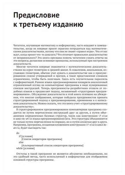 Доказательства играют центральную роль в высшей математике и теоретической информатике, однако многие студенты испытывают трудности при изучении предметов, которые в значительной степени основаны на доказательствах. Третье издание этого бестселлера помогает студентам перейти от механического решения задач к осмысленному доказательству теорем, обучая их приемам, необходимым для чтения и написания доказательств. Это расширенное издание, включающее более 150 новых упражнений и новую главу по теории чисел, знакомит учащихся с миром высшей математики через мастерство доказательства. Книга начинается с основных понятий логики и теории множеств, на примере которых учащихся знакомятся с языком математики и его интерпретацией. Эти концепции заложены в основу методов, которые впоследствии применяются для сложных умозаключений, включая подробные пошаговые описания стратегий построения доказательств теорий о свойствах чисел, множеств, отношений и функций.