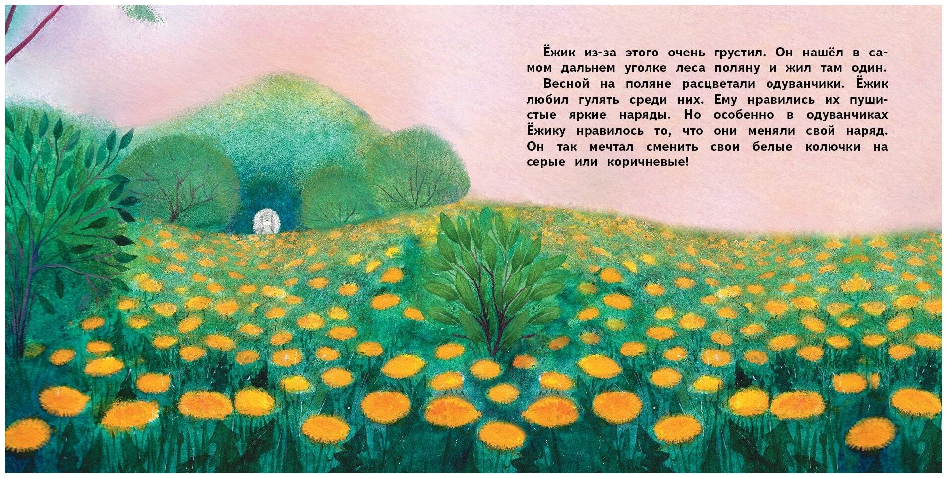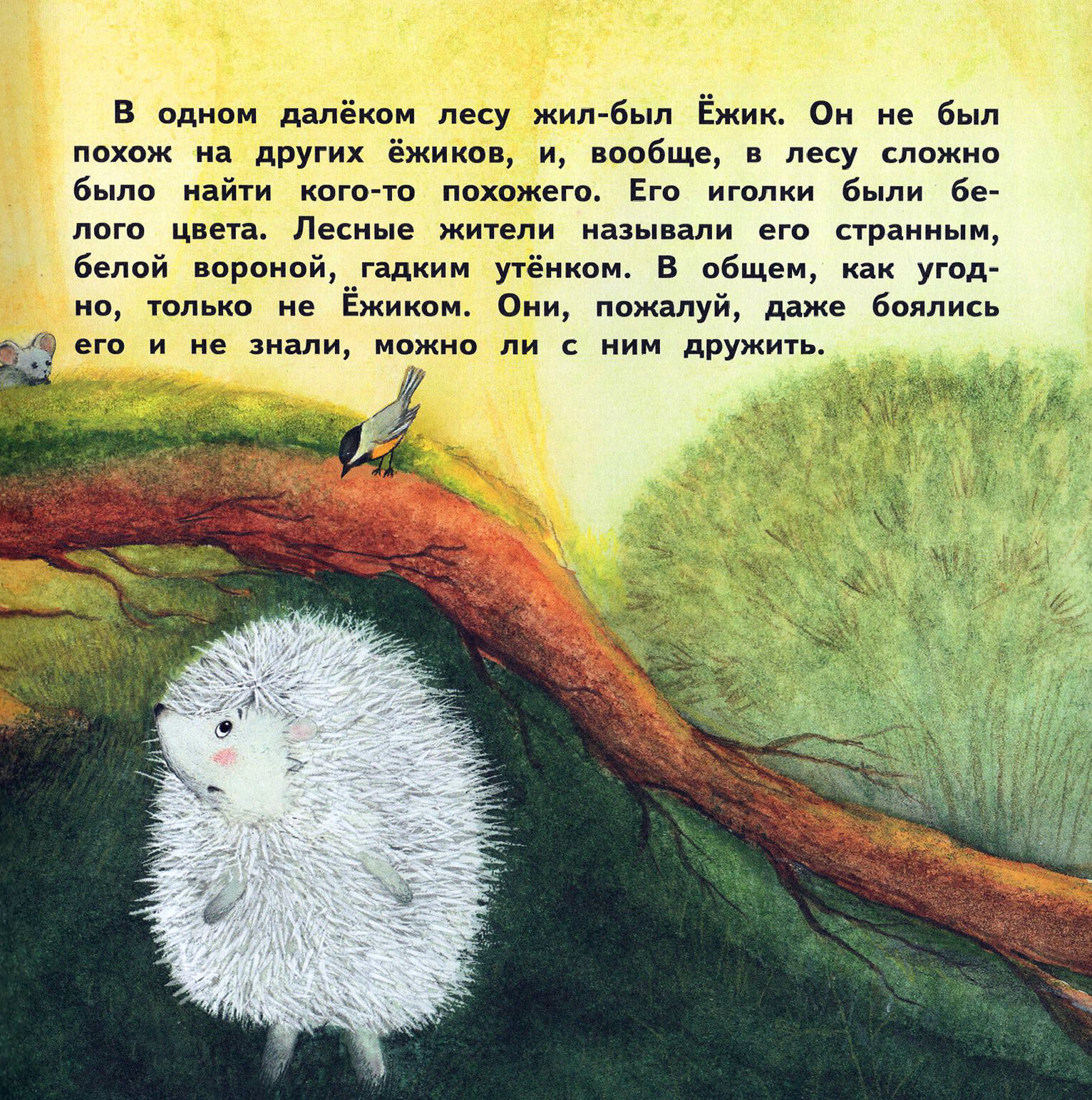 В одном лесу жил маленький Ёжик. Он так мечтал сменить свои белые колючки на обычные, коричневые. Тогда лесные жители перестали бы его сторониться и подружились с ним. Но так ли важно какого цвета у тебя колючки, если ты добрый, отзывчивый и храбрый?..