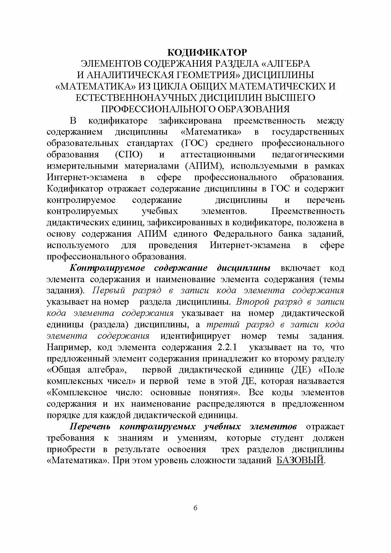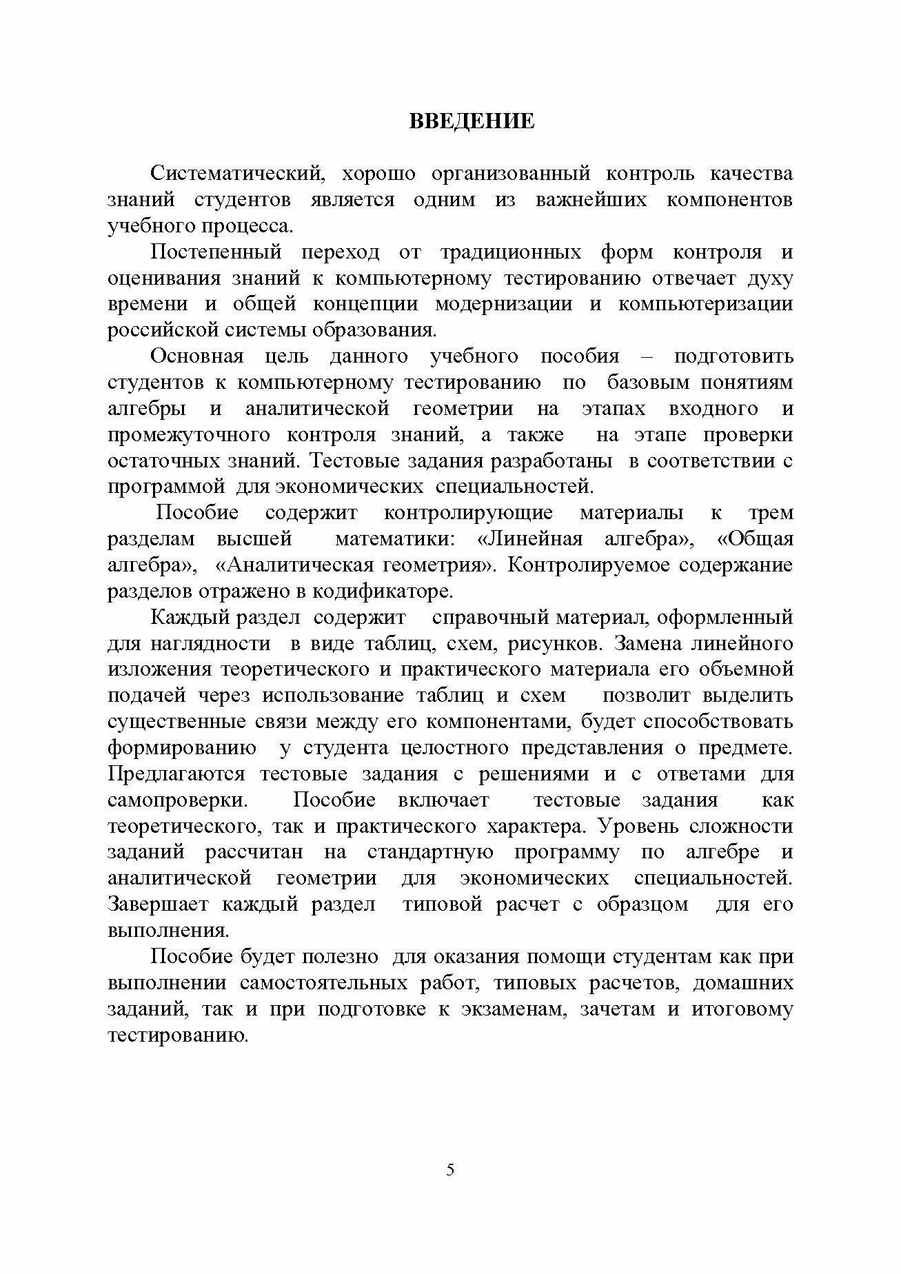 Учебное пособие содержит кодификатор, тестовые задания и типовые расчеты по трем разделам высшей математики: линейная алгебра, общая алгебра, аналитическая геометрия. Каждый раздел снабжен справочным материалом, оформленным в виде таблиц, схем, рисунков. Имеются тестовые задания с решениями, тестовые задания для самопроверки и индивидуальные типовые задания с образцами для их выполнения.