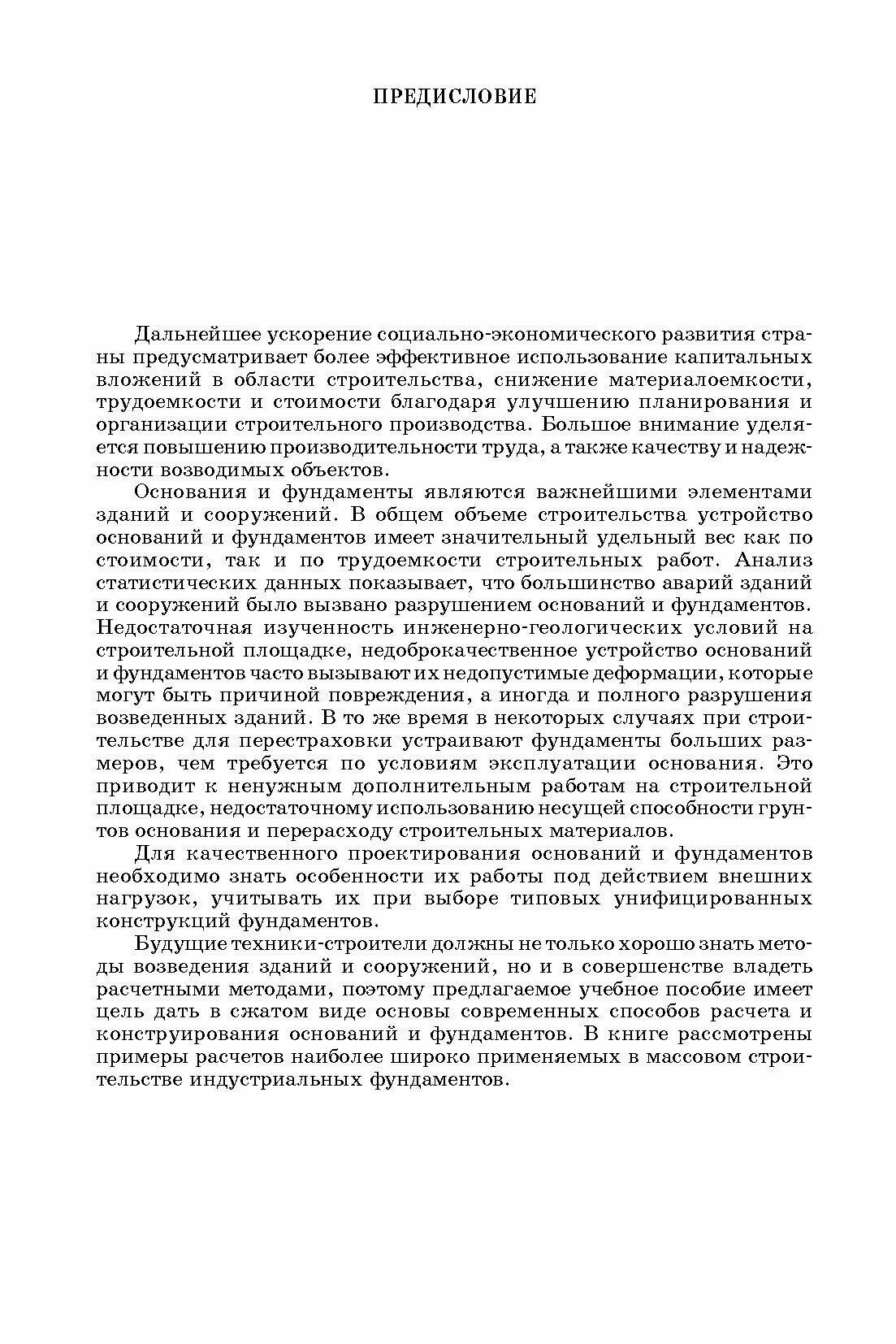 В книге изложены общие сведения о методах расчета оснований и фундаментов по предельным состояниям. Приведены примеры определения напряжений в основаниях при действии внешней нагрузки. Даны различные варианты расчета и конструирования фундаментов в открытых котлованах, гибких и свайных фундаментов. Рассмотрено проектирование фундаментов реконструируемых зданий.