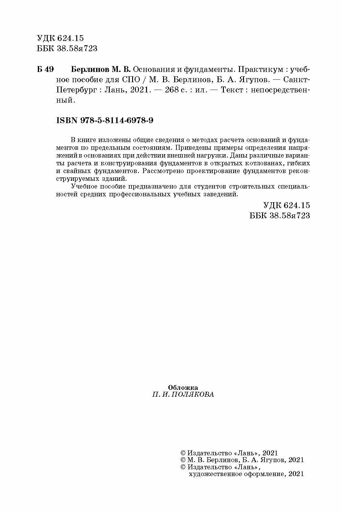 Основания и фундаменты. Практикум. СПО (Берлинов Михаил Васильевич, Ягупов Борис Аркадьевич); Лань, 2024