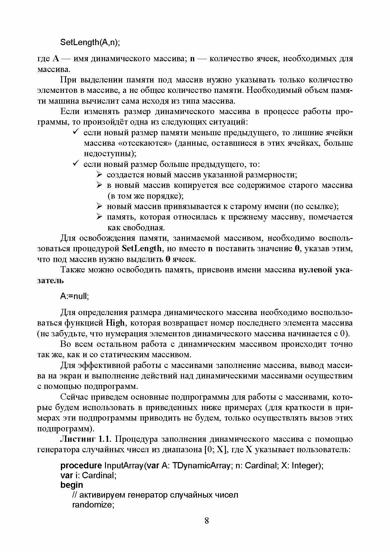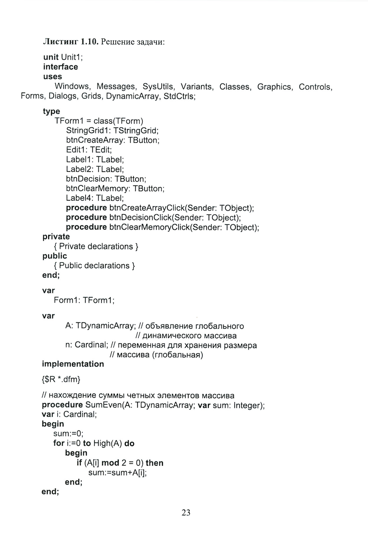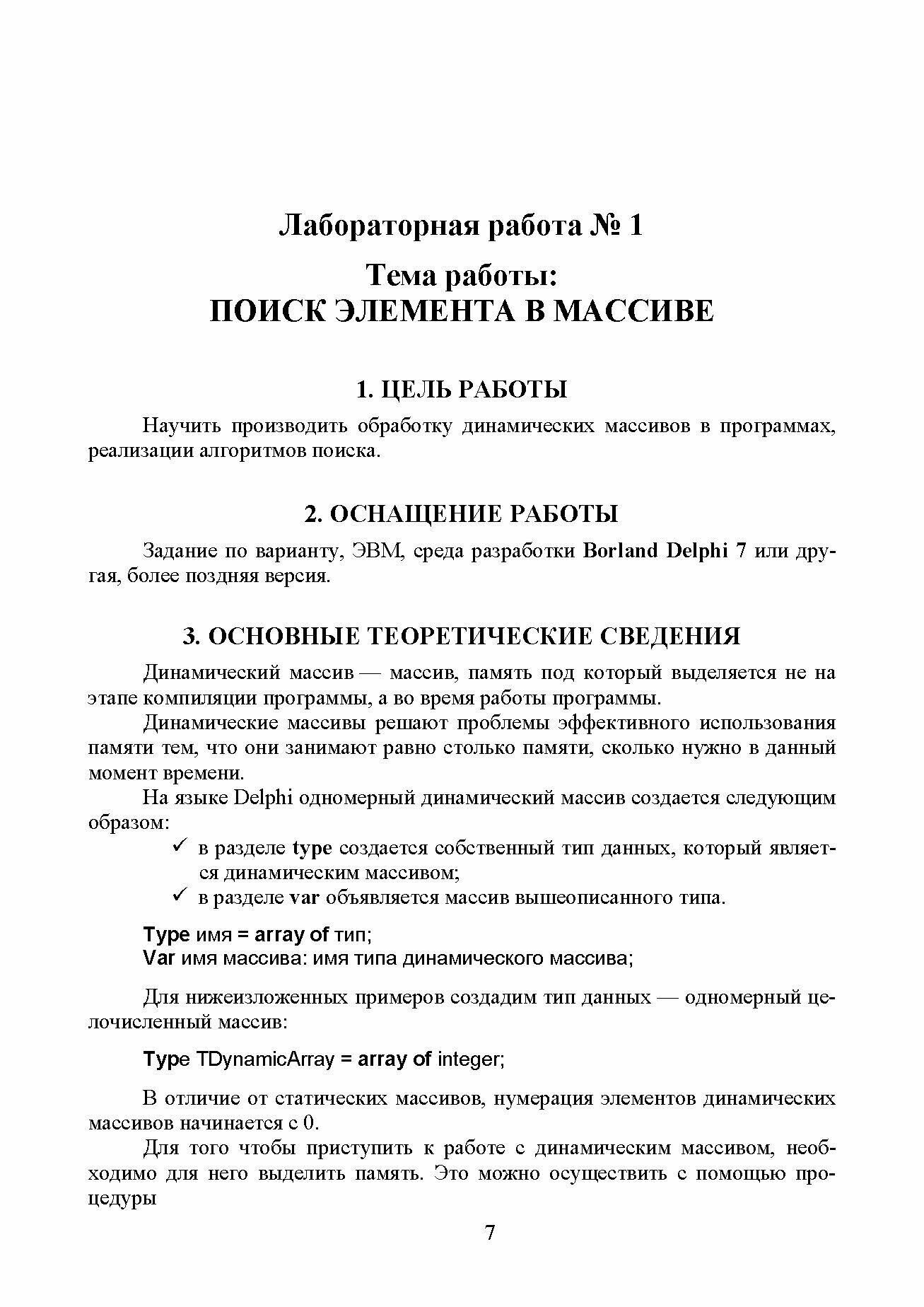 Учебное пособие содержит 6 лабораторных работ, посвященных линейным структурам данных. Среди них динамические массивы, односвязный линейный список, стек, очередь, множества. В лабораторных работах предлагается 30 вариантов заданий для закрепления темы лабораторной работы. Каждая лабораторная работа сопровождается краткими теоретическими сведениями по теме, а также иллюстрируется решением типичных примеров. Каждый пример содержит условие задачи, изложение алгоритма (принципа) решения задачи, макет формы с описанием необходимых компонентов, листинг программного кода решения данной задачи. Для удобства и эффективного применения различных структур данных в учебном пособии предлагаются программные модули реализации следующих структур: динамический массив, сортировка динамических массивов, линейный список, стек, очередь. Программный код данных модулей приводится в приложении.