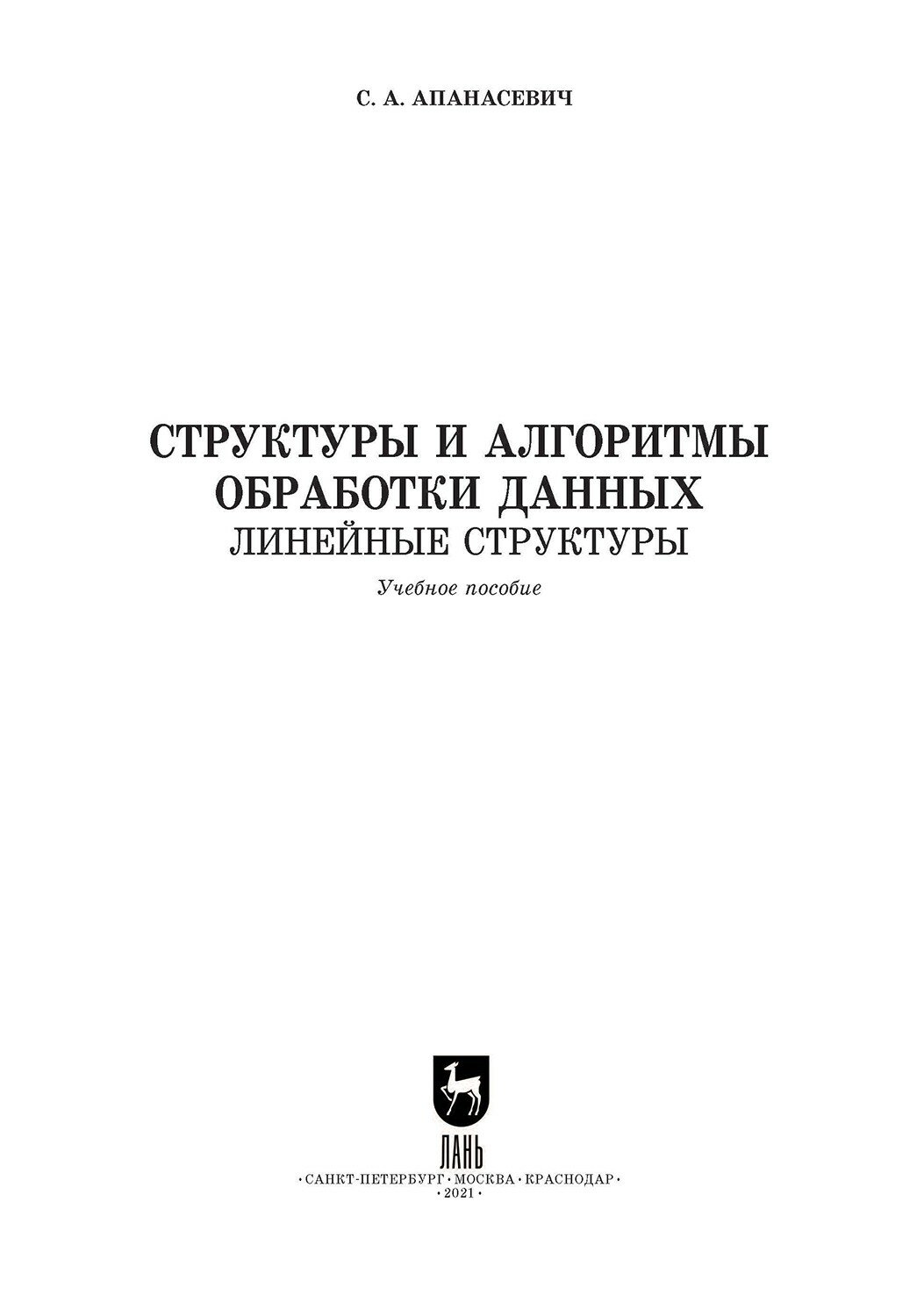 Структуры и алгоритмы обработки данных. Линейные структуры. СПО (С. А. Апанасевич); Издательство ЛАНЬ, 2021