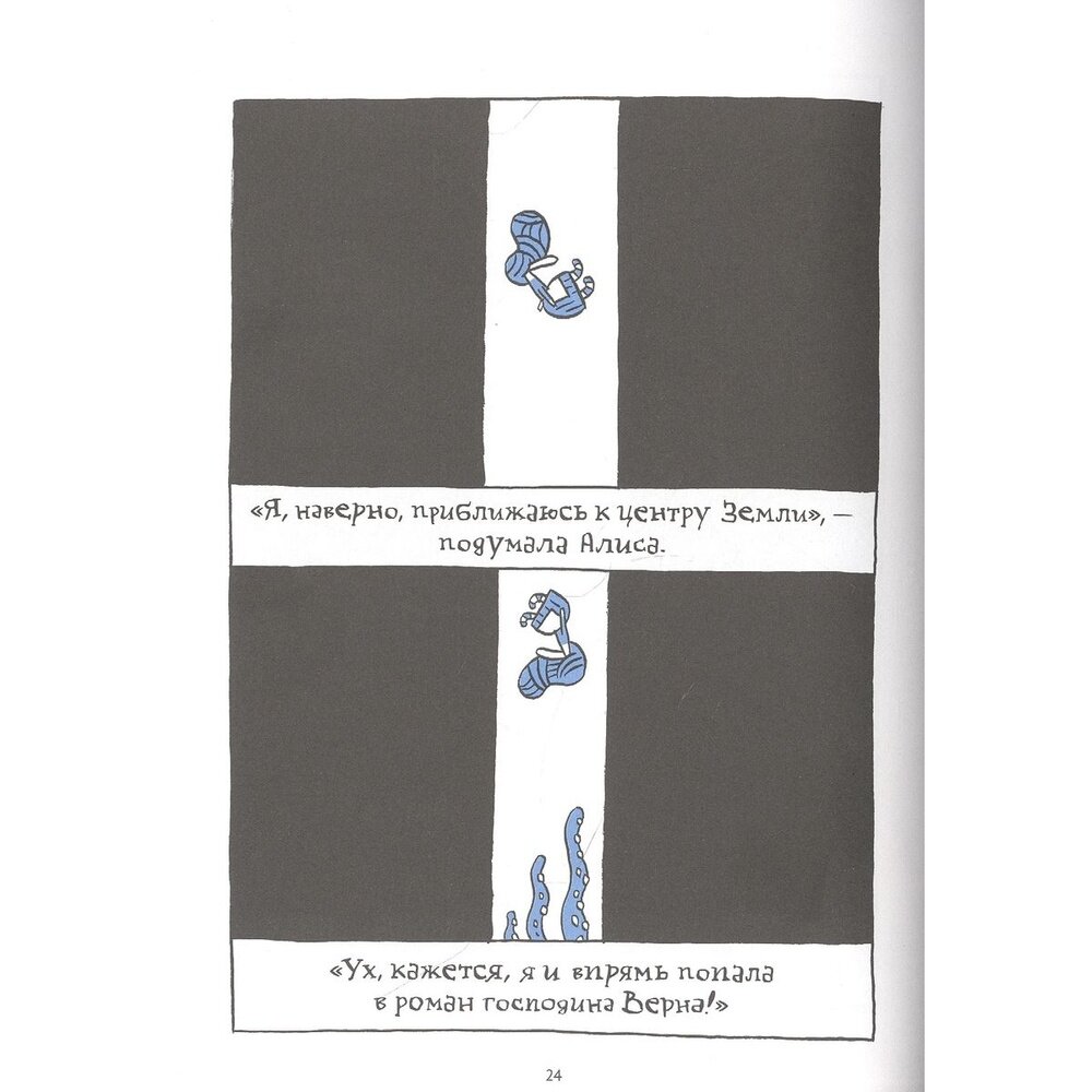 Алисе постепенно наскучило сидеть на берегу реки и ничего не делать. Разок-другой она заглянула в книжку, которую читала сестра, но там не было ни картинок, ни разговоров. «Что толку в книжке, если в ней нет ни картинок, ни разговоров», — подумала Алиса. Она сидела и размышляла, не встать ли ей и не нарвать ли маргариток, чтобы сплести венок, как вдруг… перед ней появился Кролик и предложил ей показать первое, богато иллюстрированное издание. Принимая приглашение, могла ли Алиса вообразить, какие злоключения и встречи ждут её в подземном доме?