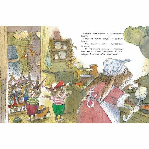 2 замечательные истории о зайчонке Винни и его семье. Как скучно сидеть дома в дождик и как интересно фантазировать о путешествиях в далекие страны и необычные места вашего ребёнка научит заячье семейство. А самое главное для малыша это чем порадовать маму в день рождения и как провести незабываемый день всей семьей. В общем, сказки лёгкие и добрые. Их можно неоднократно перечитывать и рассматривать красочные иллюстрации.
