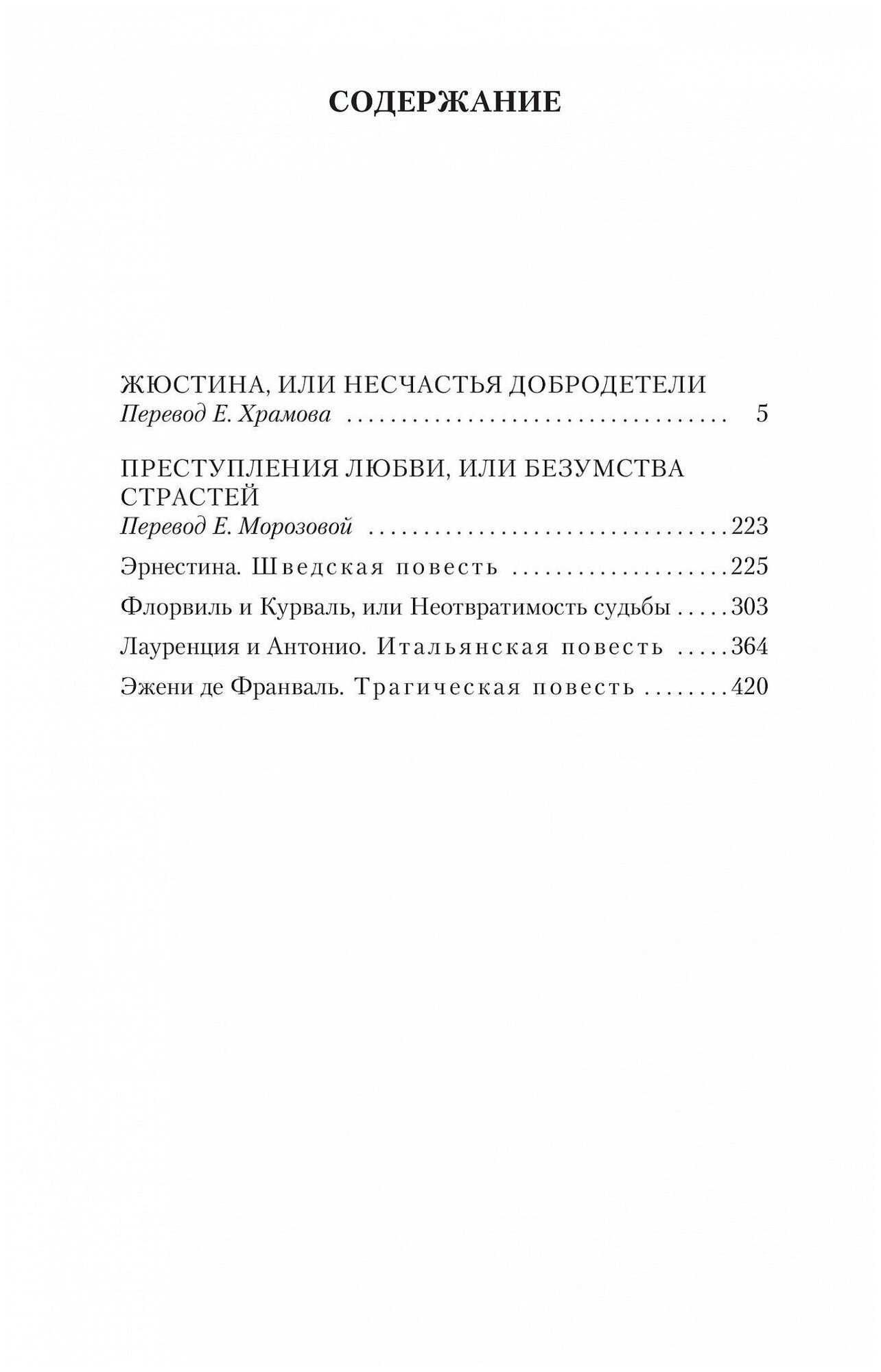 Легендарный маркиз де Сад создавал свои произведения, будучи заключенным в Бастилии. Его романы и новеллы, в которых воспевается фантастический мир преступной любви, где невероятные приключения соседствуют с кропотливым изучением человеческих страстей, пользуются неослабевающим вниманием по всему миру. Де Саду удалось невероятное — его тексты, написанные более двухсот лет назад, до сих пор волнуют, ужасают и восхищают даже самых непредвзятых читателей. В настоящее издание включена знаменитая повесть «Жюстина, или Несчастья добродетели», а также четыре новеллы из сборника «Преступления любви, или Безумства страстей».