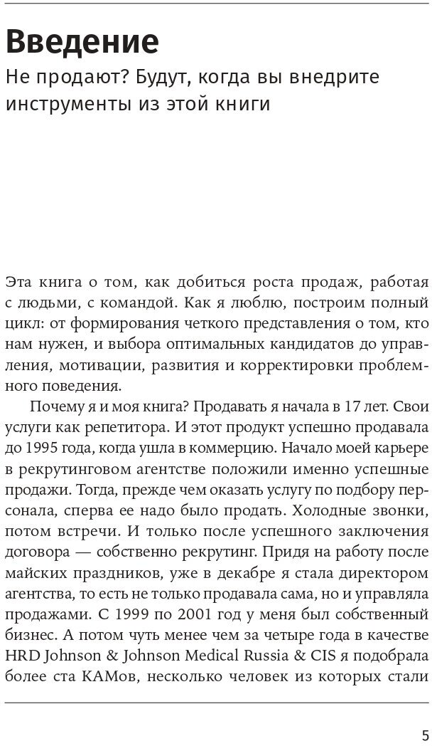 Грамотное управление отделом продаж — залог коммерческого успеха любой организации. Гуру в области HR Светлана Иванова рассказывает о полном цикле работы с командой продажников: от формирования четкого представления о том, кто нужен в отделе, и выбора оптимальных кандидатов до управления, мотивации, развития и корректировки проблемного поведения сотрудников.В этой книге все предельно практично: необходимый минимум теории и множество заданий, упражнений и кейсов, которые помогут вам в работе.Также здесь описана новая типология, которая основывается на ключевых особенностях личности. Вы узнаете, кто лучше всего подходит на роль продажника и как работать с сотрудниками, которые на первый взгляд не очень подходят для работы в продажах. Внедрите методику Светланы, и все ваши сотрудники станут продавать успешно.