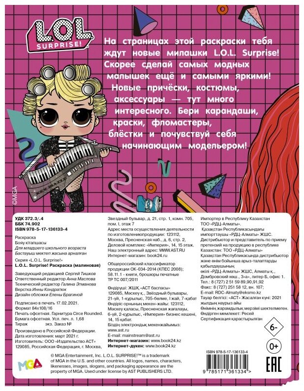 L.O.L. Surprise! Раскраска (малиновая) (Маслова А. (ред.)); ИЗДАТЕЛЬСТВО "АСТ", 2021