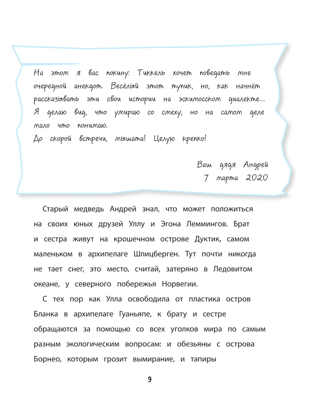 Захватывающая история, прочла на одном дыхании. Экспедиция по спасению природы Уллой Лемминг удалась, хорошо, что роман законченный, но, тем не менее, продолжение будет и я его очень жду. Впервые увидела, что в литературе подняли такую актуальную тему - защита природы. Герои все очень обаятельные и славные, отмечу и диалоги, некоторые просто уморительные. Классная книга.