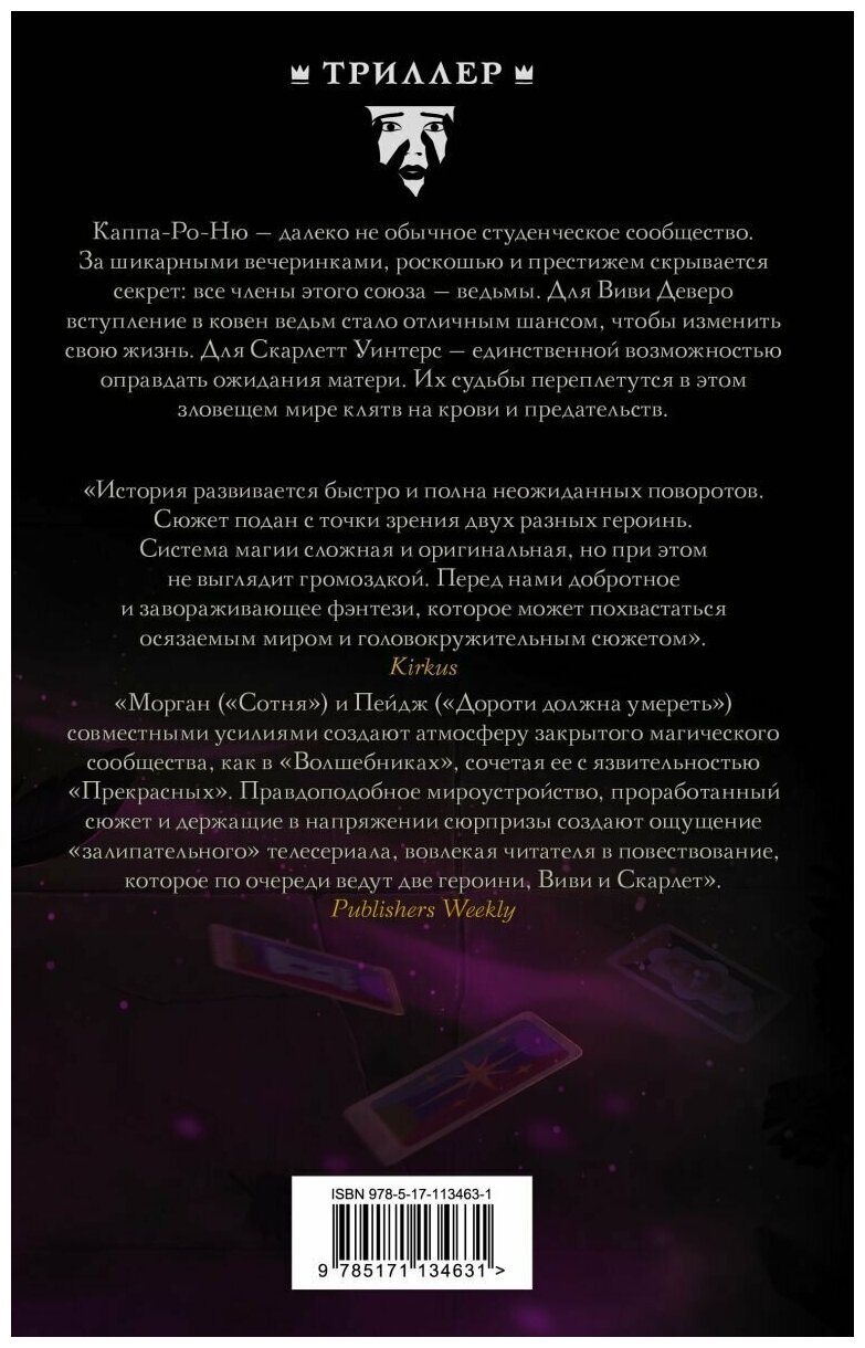Мне очень понравилось произведение, созданное в соавторстве. Это было увлекательно, затягивающе и интересно. Я словно посмотрела подростковый сериал, обладающий теми самыми признаками, благодаря которым ты с жадностью поглотаешь серию за серией. Легко вливаешься в происходящее и наблюдаешь за отношениями героев, «атакой» на ведьм, строишь догадки, и неистово ждёшь продолжения.