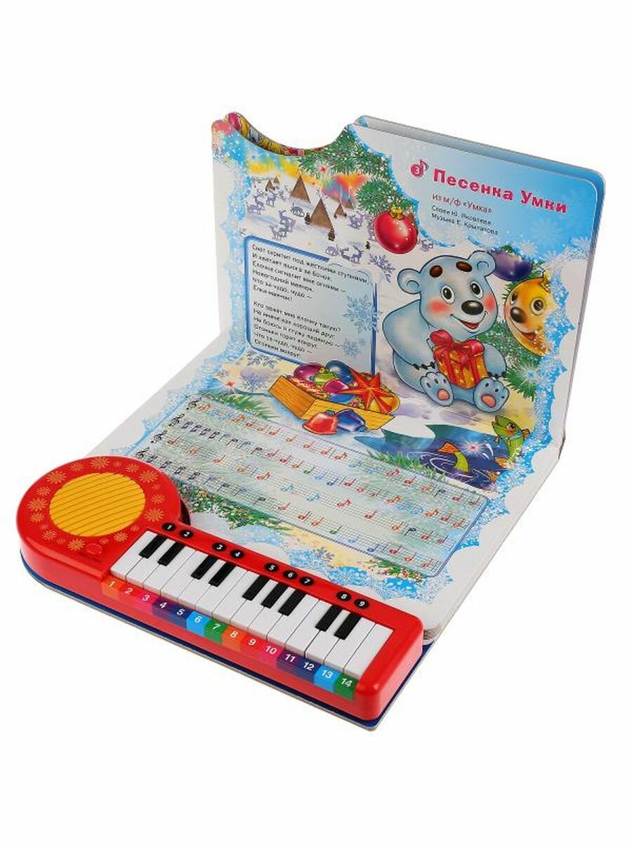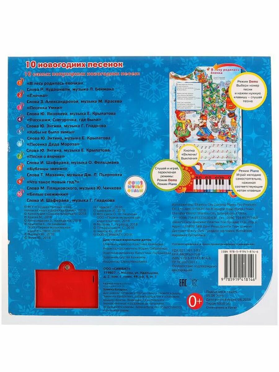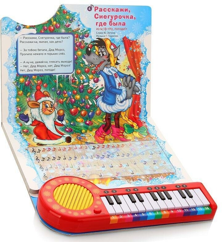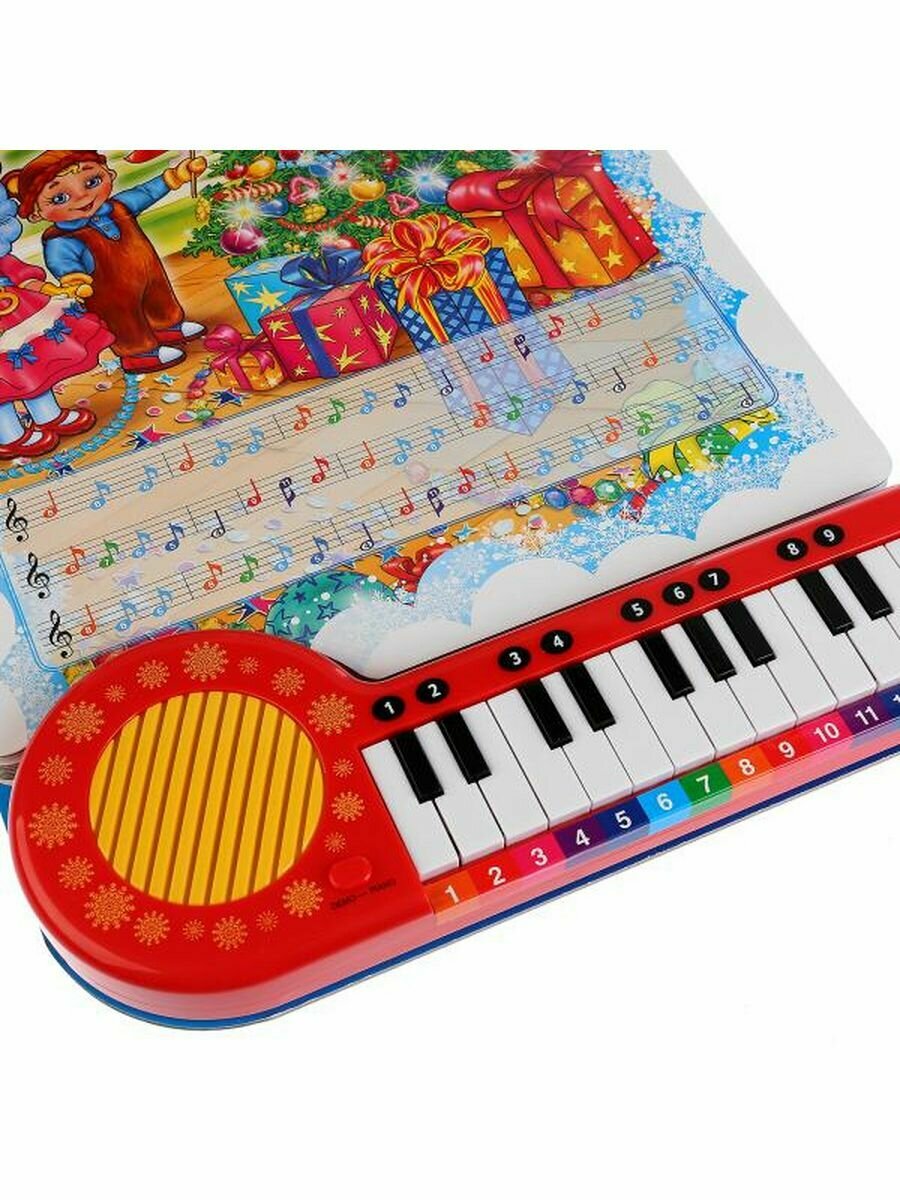 Замечательная книга "В лесу родилась елочка" со встроенным маленьким пианино станет одной из самых любимых! В ней можно найти 10 новогодних песенок. У пианино 23 клавиши и 2 режима. В режиме "песенки" при нажатии клавиш можно просто прослушать песенки, а в режиме "пианино" ребенок сам сможет поиграть на клавишах пианино и сочинить свои мелодии. Еще он сможет играть по нотам. Ведь на каждой странице книги есть текст песенки с разноцветными нотками, которые соответствуют цвету клавиш на пианино, и если играть на клавишах пианино согласно ноткам, то может получиться песенка. Такая игрушка будет укреплять моторику детских пальчиков, координацию движений, развивать зрение и слух, музыкальную память и чувство ритма.