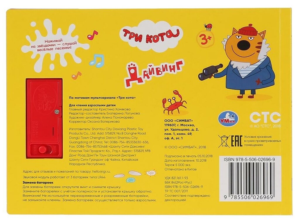 Звуковая книга Котята кондитеры Три кота, 3 песенки