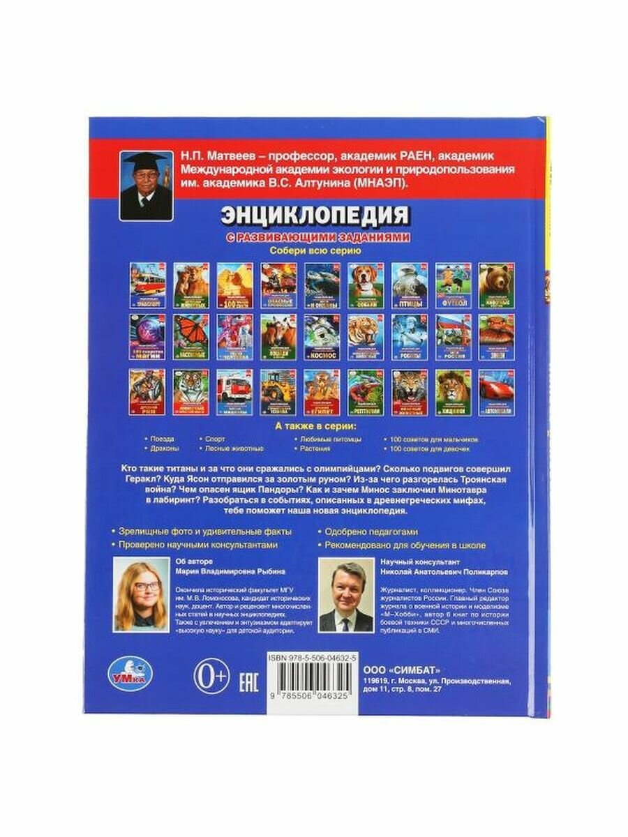 "УМКА". МИФЫ ДРЕВНЕЙ ГРЕЦИИ (ЭНЦИКЛОПЕДИЯ А4 С РАЗВИВАЮЩИМИ ЗАДАНИЯМИ). ТВЕРДЫЙ ПЕРЕПЛЕТ в кор.15шт (Рыбина Мария Владимировна); СИМБАТ ООО, 2020