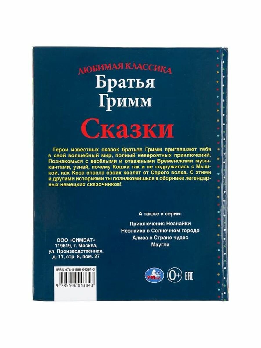 "УМКА". СКАЗКИ. БРАТЬЯ ГРИММ (СЕРИЯ: ЛЮБИМАЯ КЛАССИКА) ТВЕРДЫЙ ПЕРЕПЛЕТ. БУМАГА ОФСЕТНАЯ в кор.12шт (Гримм Якоб и Вильгельм); Умка, 2020