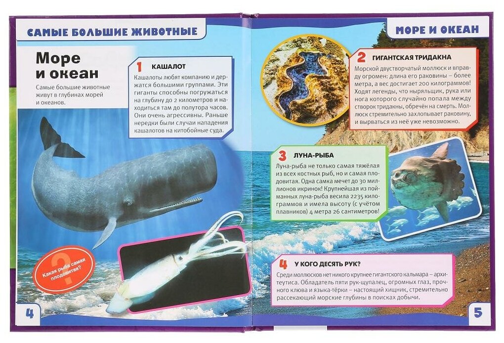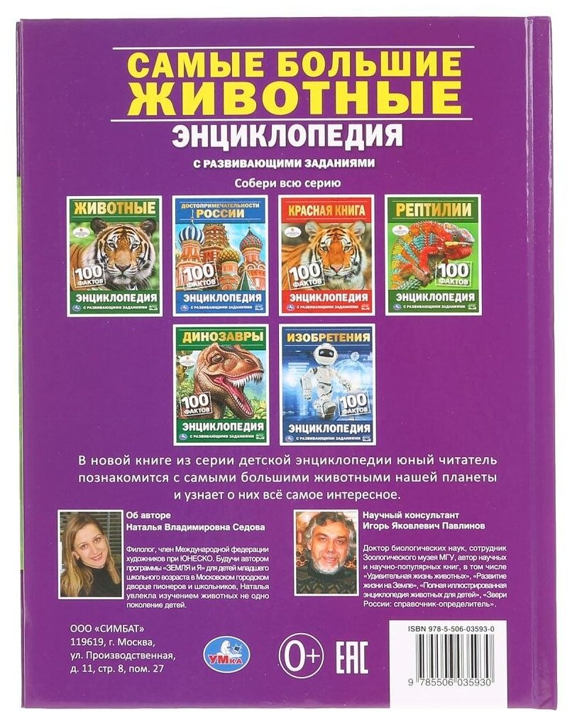 Яркая и красочная энциклопедия из серии детской энциклопедии познакомит юного читателя с самыми большими животными нашей планеты. Зрелищные фото и удивительные факты увлекут ребёнка и помогут ему быстро, эффективно и с удовольствием усвоить новую информацию.