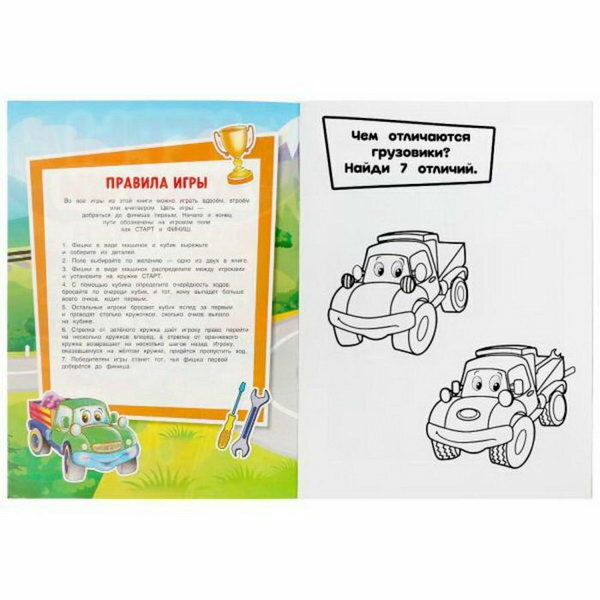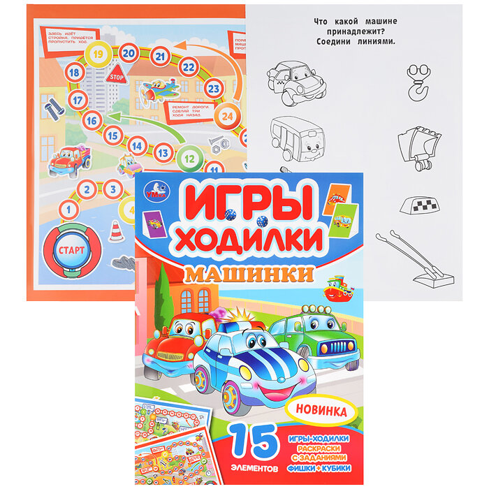 В этой книге малыш найдёт интересные раскраски с развивающими заданиями, увлекательные игры и фишки с изображением разных видов транспорта. Для игры необходимо вырезать кубик, поставить фишки на игровое поле – и вперёд за приключениями! Активити имеет удобный формат, поэтому её можно взять с собой в дорогу.