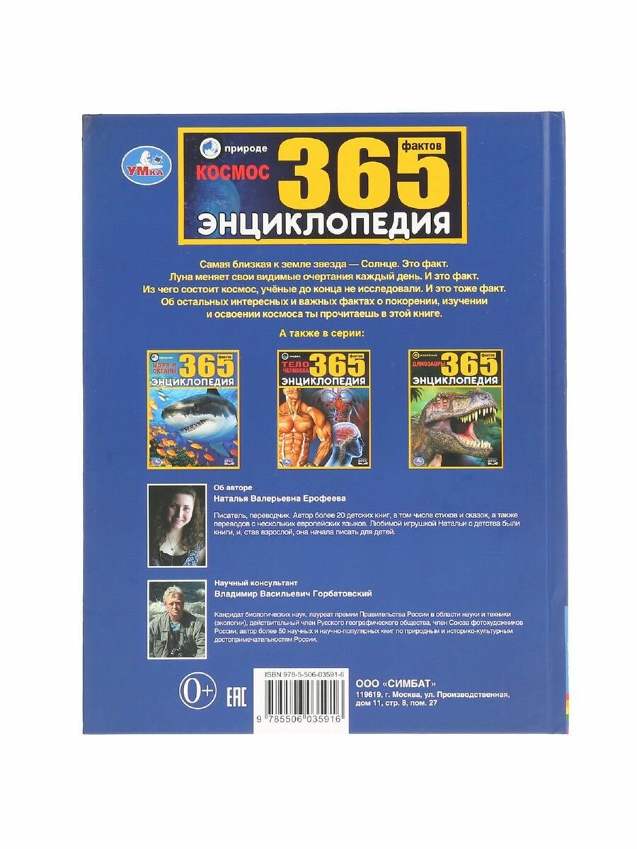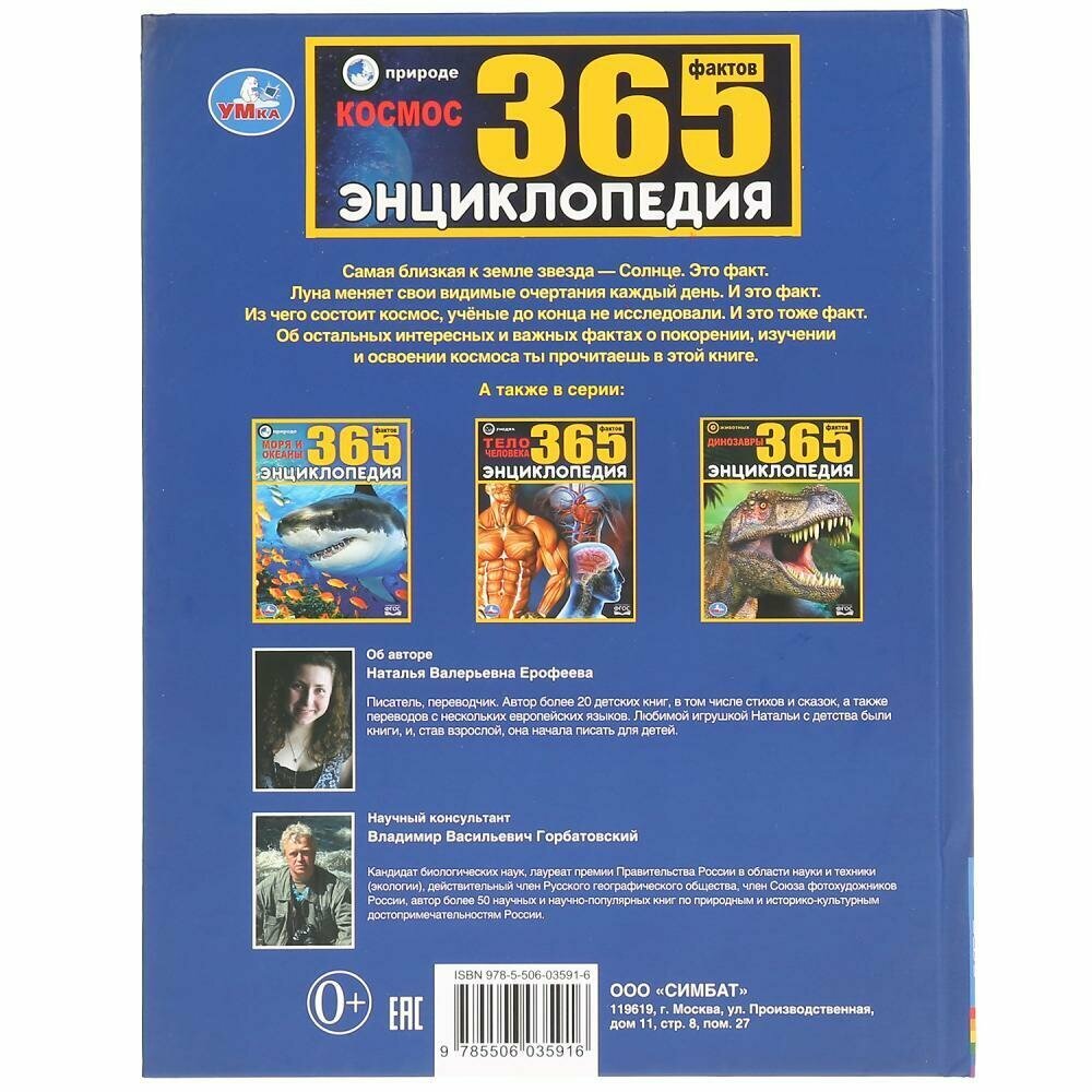"УМКА". КОСМОС. 365 ФАКТОВ. (ЭНЦИКЛОПЕДИЯ А4). ТВЕРДЫЙ ПЕРЕПЛЕТ. БУМАГА МЕЛОВАННАЯ ПУХЛАЯ в кор.14шт (Наталья Валерьевна Ерофеева); Умка, 2020