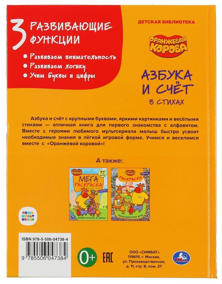 Книга "Оранжевая корова. Азбука и счёт в стихах" из серии "Детская библиотека" ТМ "УМка" станет прекрасным подарком для ребёнка: