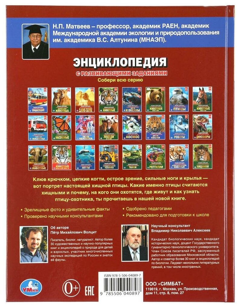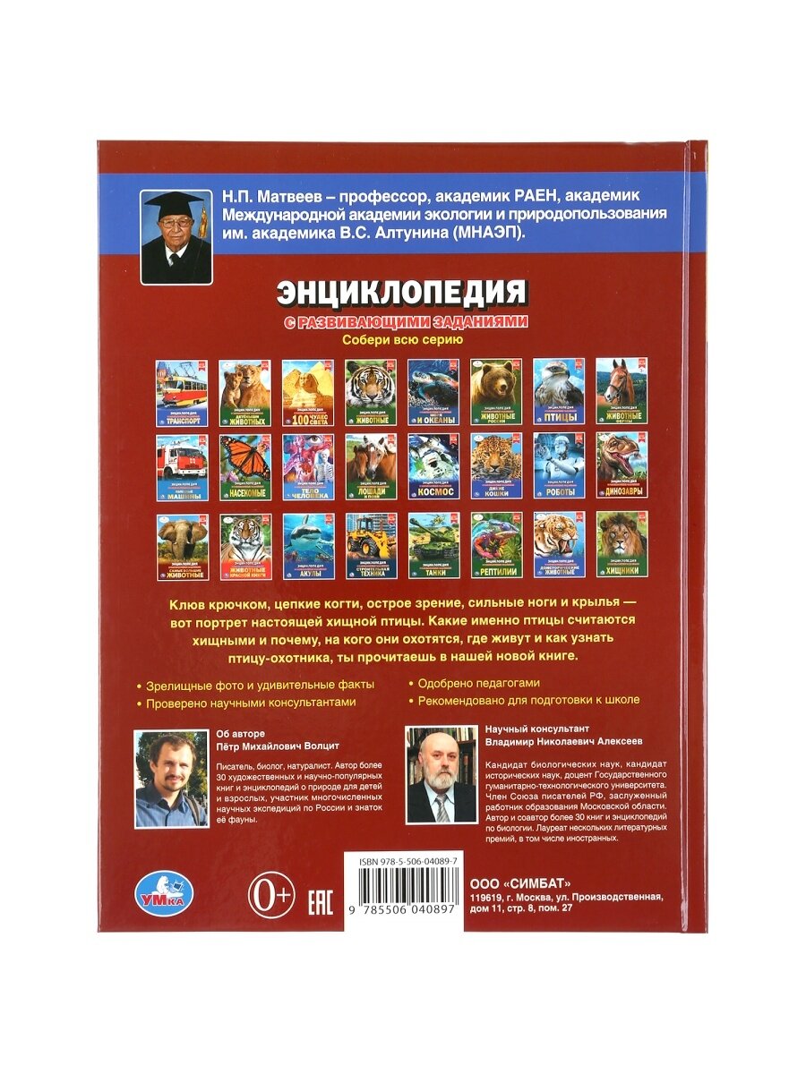 "УМКА". ХИЩНЫЕ ПТИЦЫ (ЭНЦИКЛОПЕДИЯ А4). ТВЕРДЫЙ ПЕРЕПЛЕТ. БУМАГА МЕЛОВАННАЯ 130Г в кор.15шт (Волцит Петр Михайлович); СИМБАТ ООО, 2020