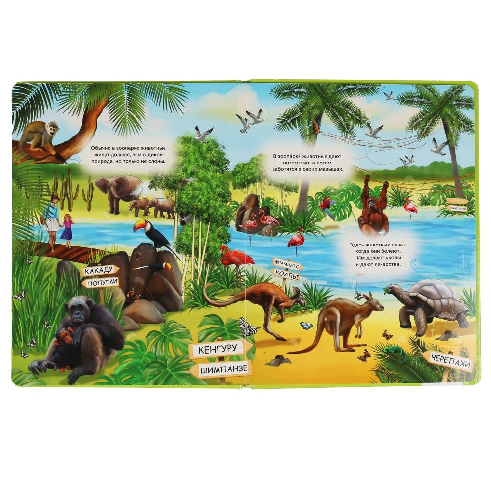 Эта занимательная книга в увлекательной форме познакомит малыша с обитателями зоопарка и интересными фактами о них. Яркие картинки и 100 секретных окошек превратят обучение в увлекательную игру.