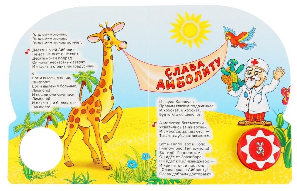 "Умка". Айболит. Корней Чуковский (1 кнопка 10 пеcенок). Формат: 160х200мм. Объем: 10 стр в кор.24шт (Чуковский Корней Иванович); Умка, 2023