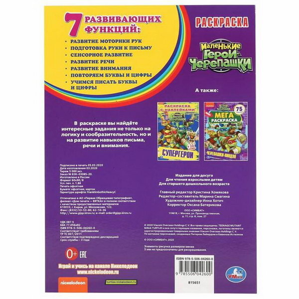 Сервис сравнения цен СкидкаГИД предлагает сравнить цены на товар «Книга: "УМКА".АЗБУКА И СЧЕТ. МАЛЕНЬКИЕ ГЕРОИ ЧЕРЕПАШКИ. ЧЕРЕПАШКИ-НИНДЗЯ (ПЕРВАЯ РАСКРАСКА А4) в кор.50шт (Нет автора); СИМБАТ ООО, 2020»