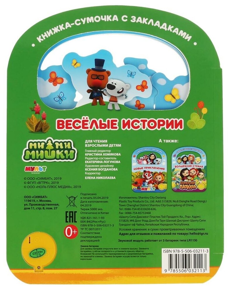 "Умка". Веселые истории. МиМиМишки (1 кн. 3 пес. с ручкой и закладками). 180х236мм 8 стр. в кор40шт (К. Хомякова); Симбат, 2019
